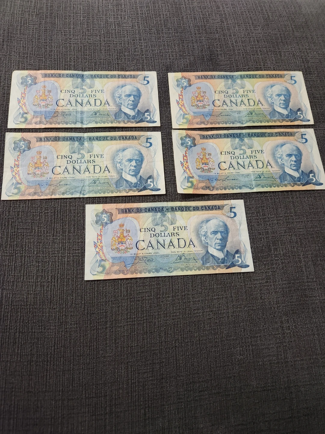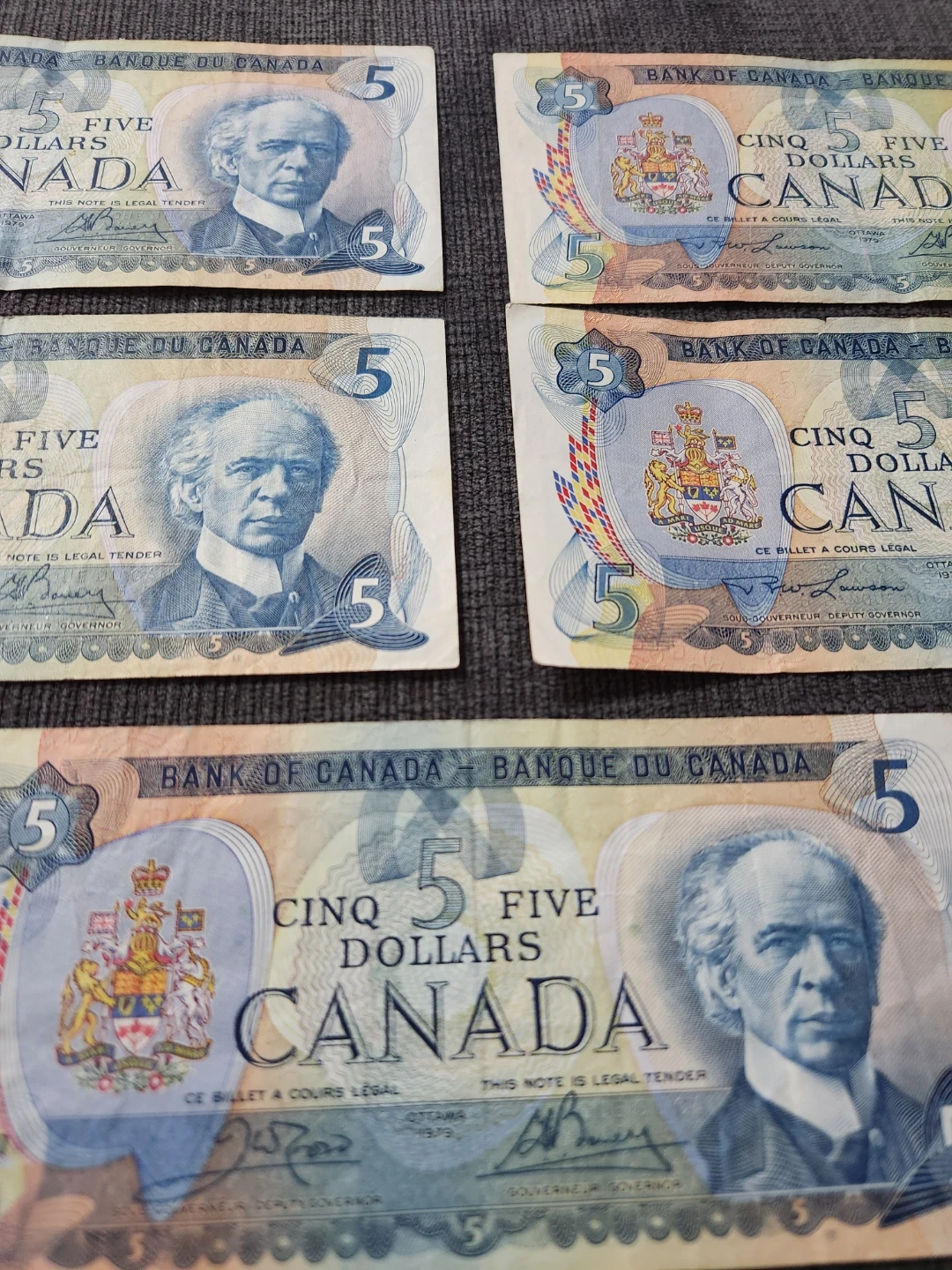 Canada 5 Dollar Bills (x5)- Years 1979