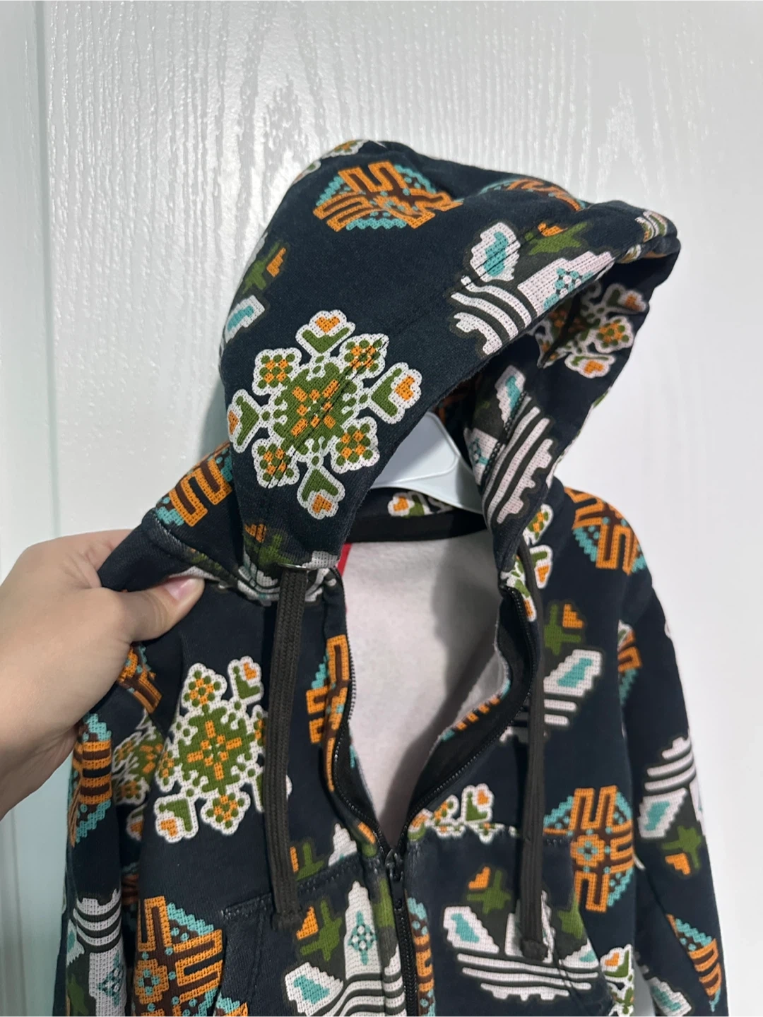 Cozy zip-up hoodie for babies with a cool all-over print. It's fleece-lined for extra warmth. Has front pockets.