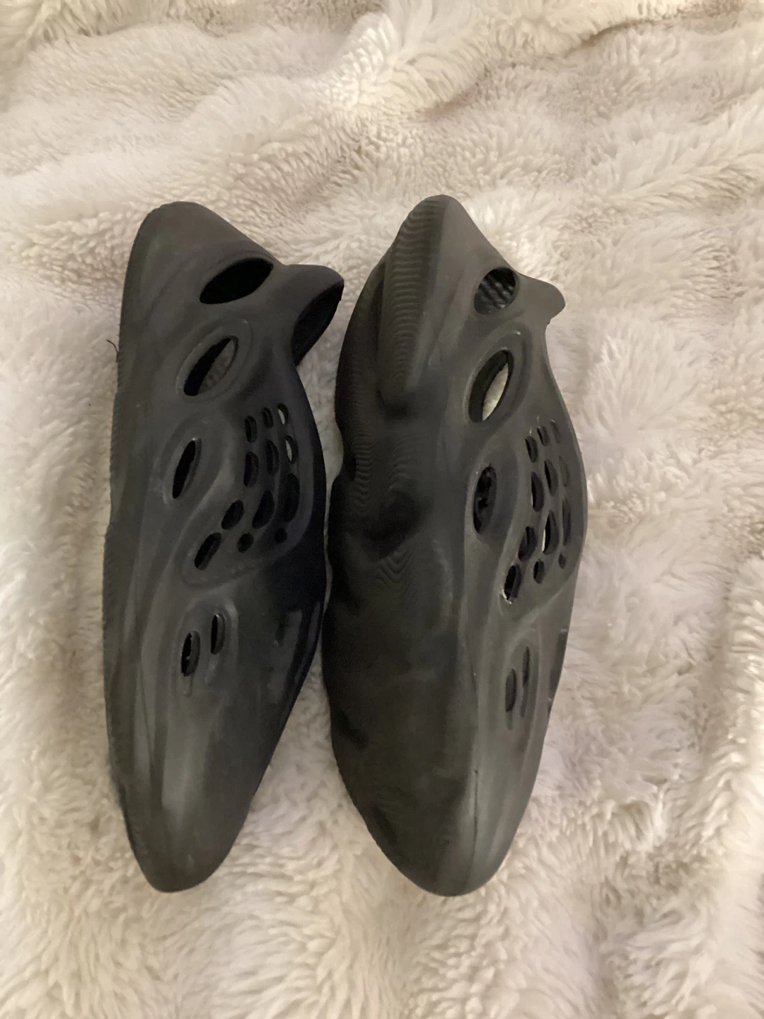 These black clogs are designed with a unique foam runner style. They're made from a durable, lightweight material. The open design allows for good ventilation.