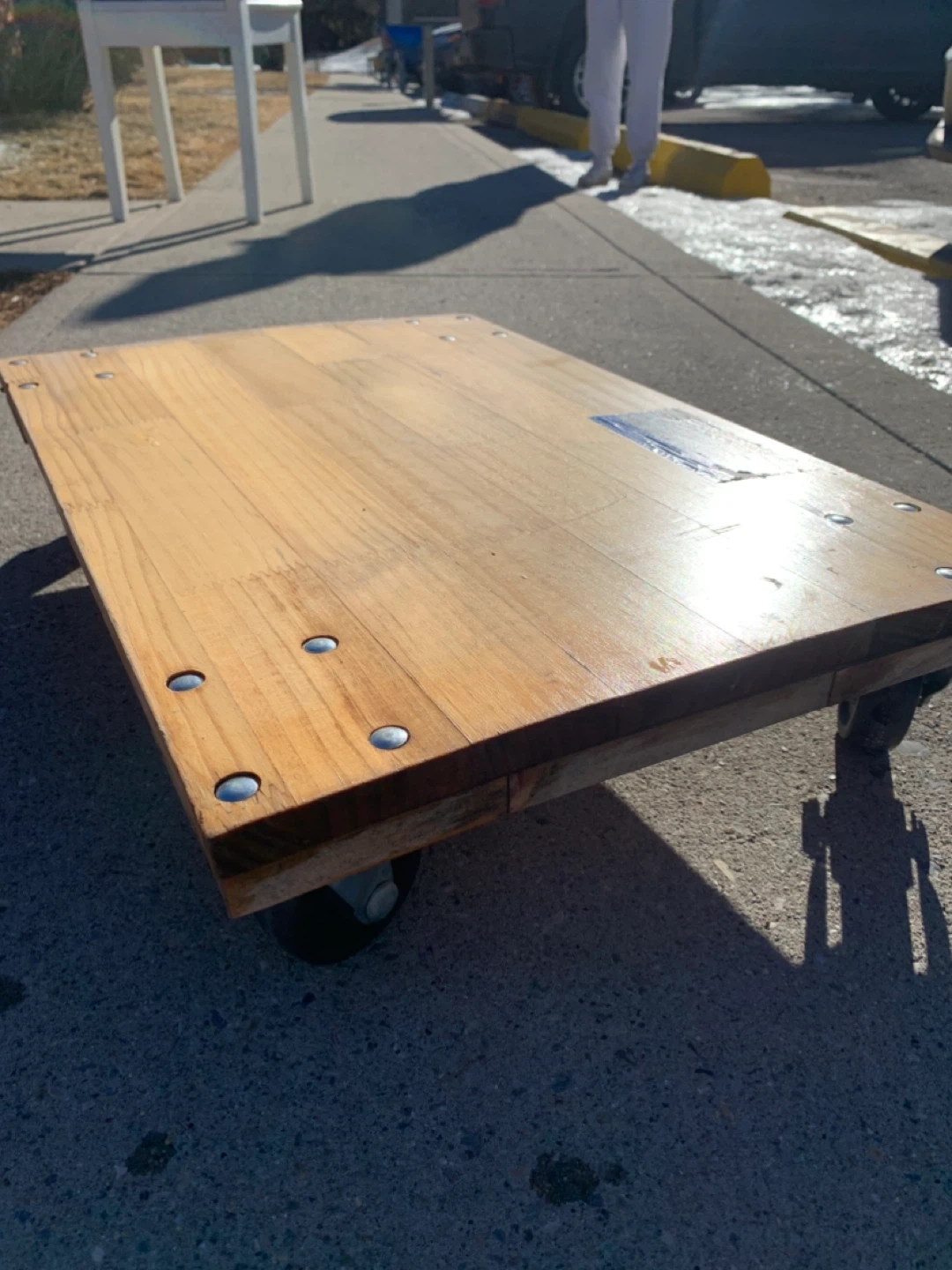 This is a 900 lb capacity hardwood platform mover's dolly. It features four swivel casters for easy mobility. The dolly has a flush-bolted smooth-finish top to prevent snagging. It's great for moving heavy furniture and appliances!