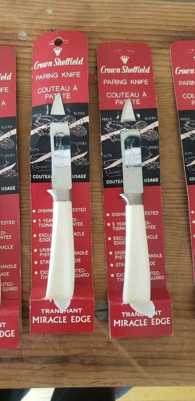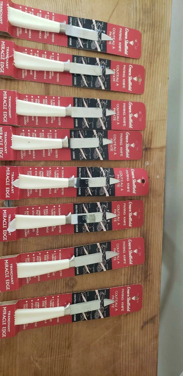 Up for sell we have these Vintage Regent Crown Sheffield Paring Knife made is England . They are 7" long the blade is 3" long asking $10 each i have 8 in total pick up on beaverbrook lane in kanata thank you