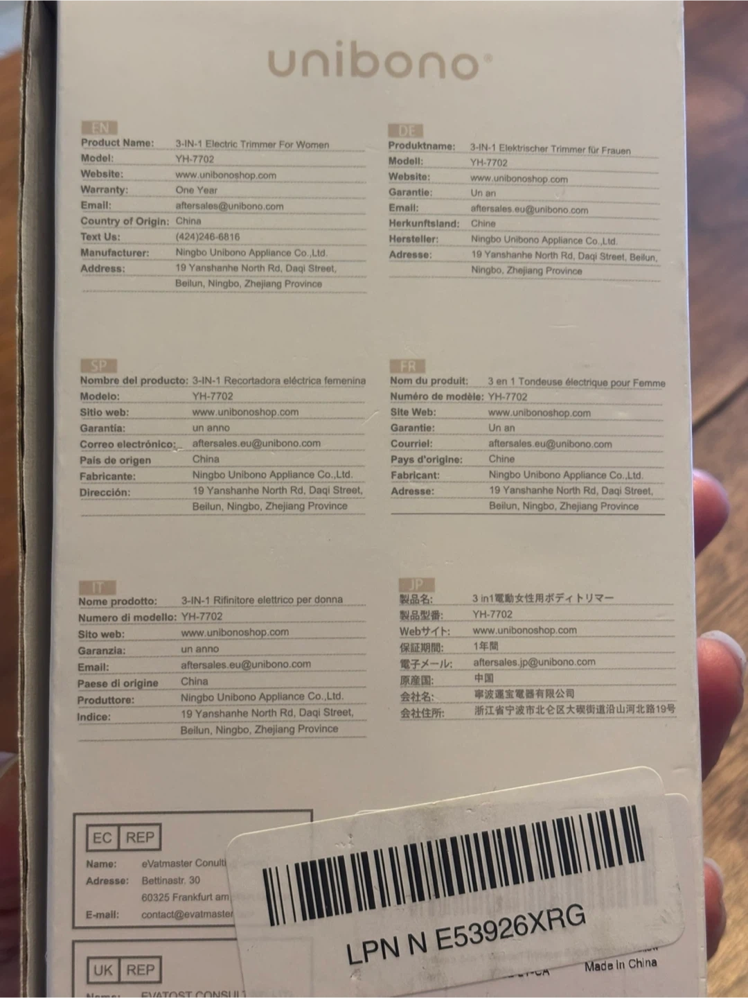 This Unibono 3-in-1 electric trimmer set is designed for bikini lines. It includes detachable heads for versatile grooming. The trimmer is ergonomically designed for comfortable use and supports wet & dry use. It features Type C charging. Brand new and never used, in original box and packaging. Cash only.