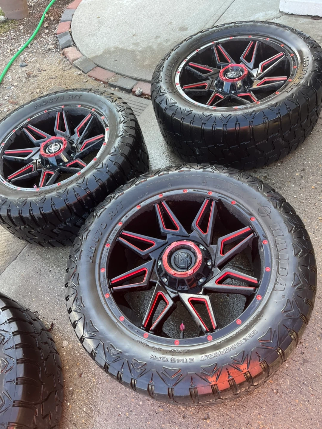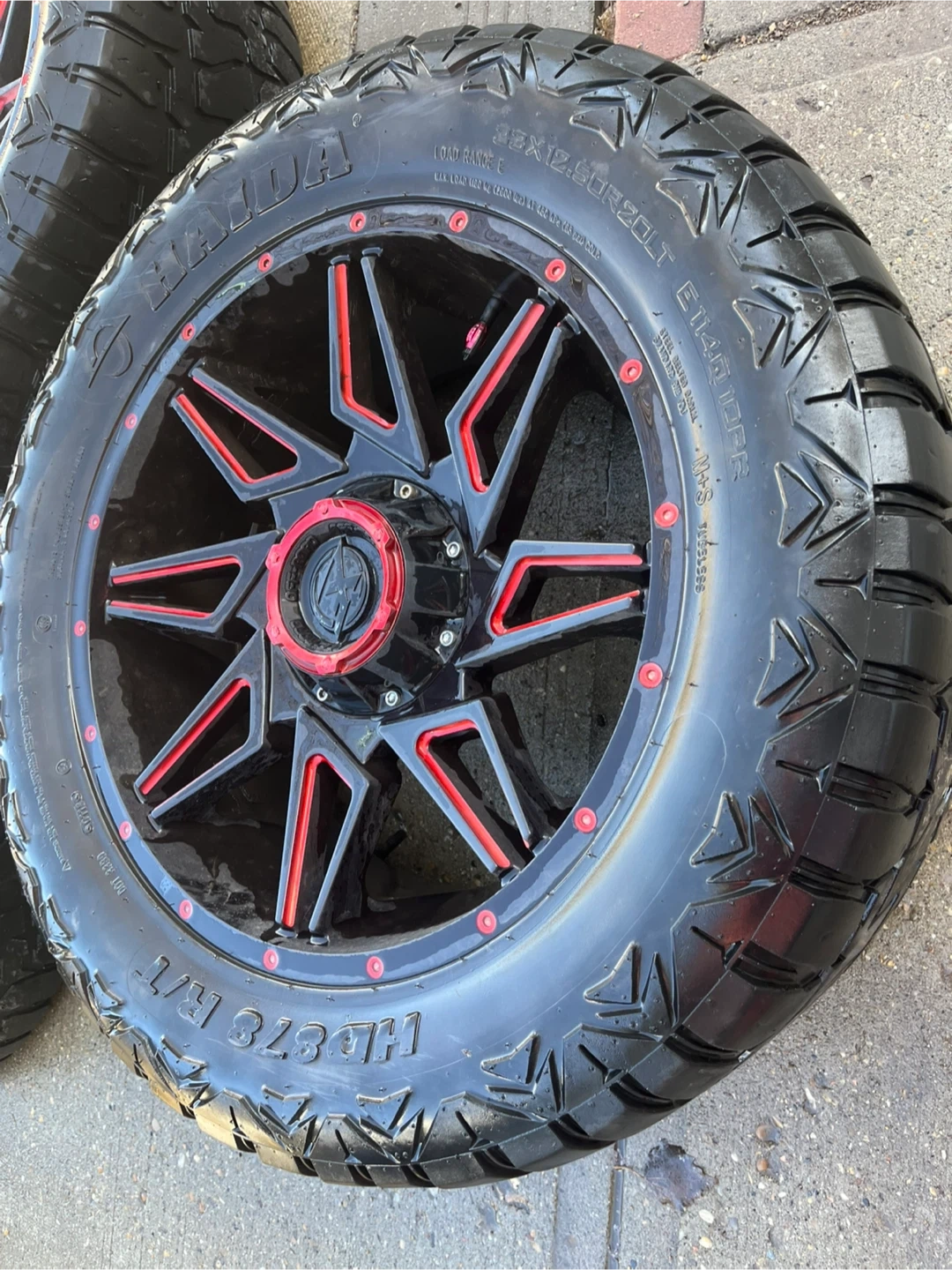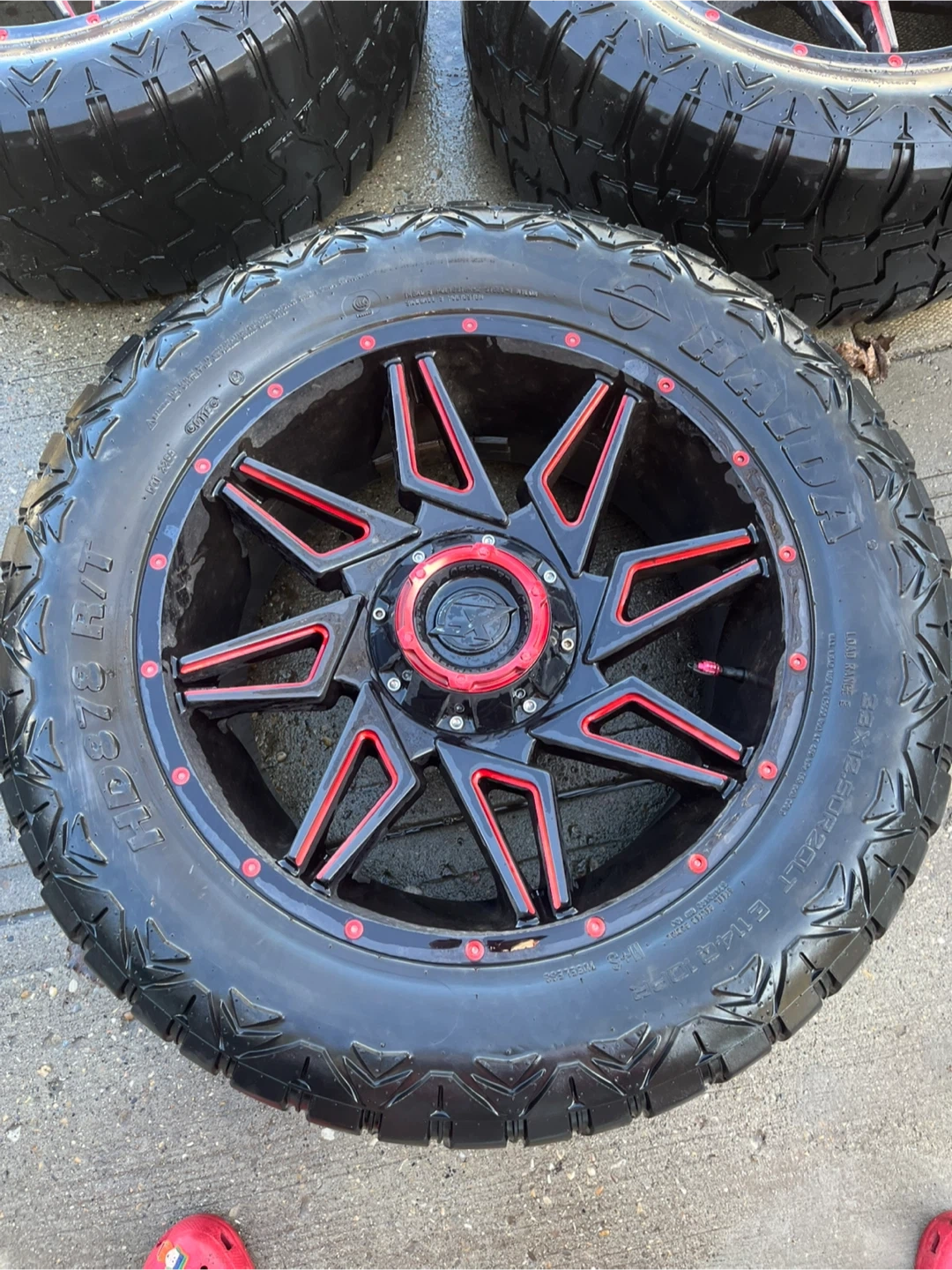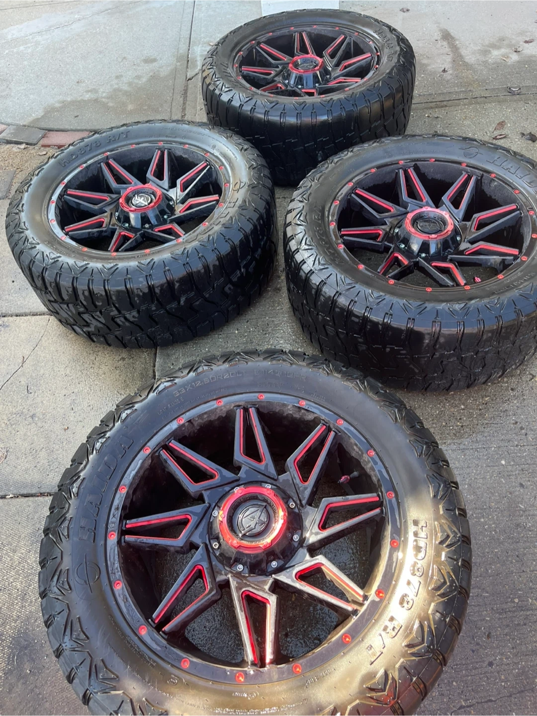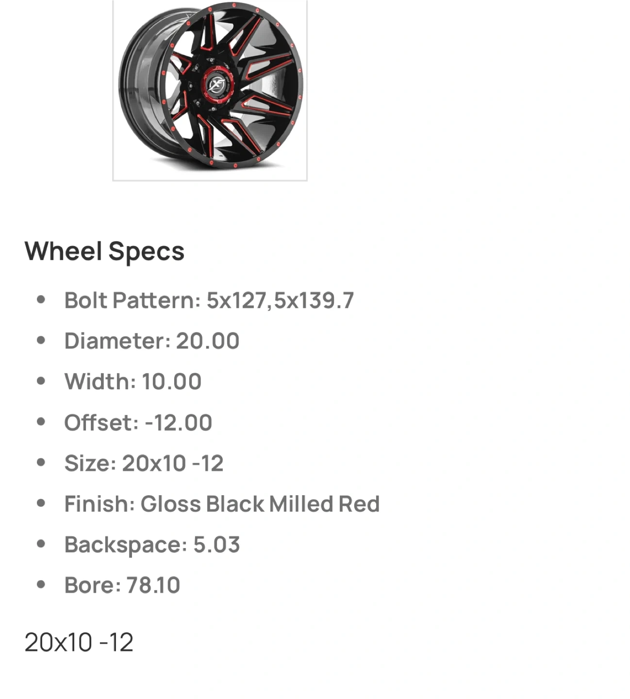 XF OFFROAD XF-218 Series Wheels - Gloss Black Red Milling rims. These wheels feature a black finish with red accents and are 20 X 12 inches. They're a great upgrade for your truck or SUV