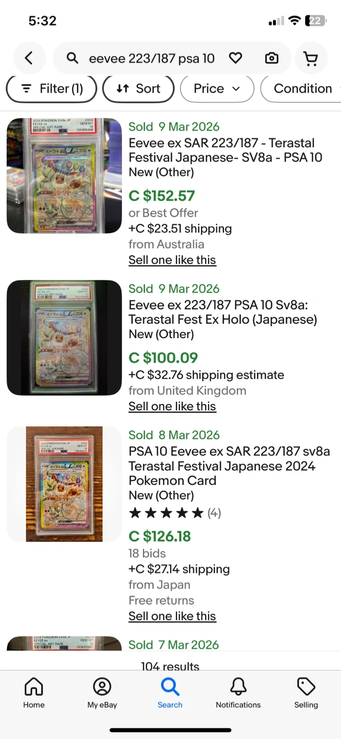 Pokemon Eevee EX SAR 223/187 PSA 10 GEM MT Special Art Rare