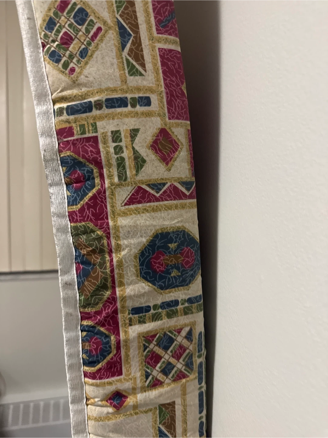 Selling a mattress with a unique patterned design. It's in good condition and ready for a new home. The mattress features a mix of geometric shapes and colours, adding a touch of style to any bedroom
