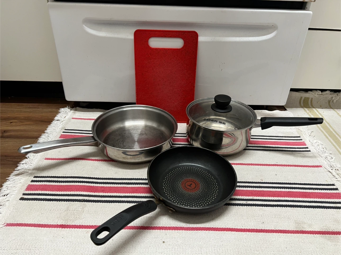 T-fal Frying Pan, Stainless Steel Pot & Cutting Board