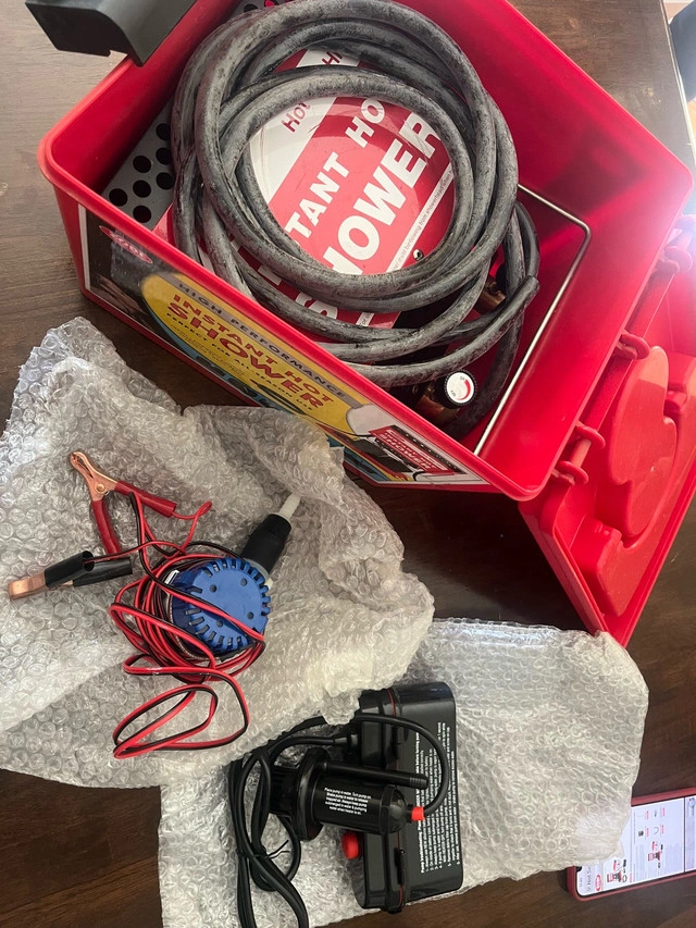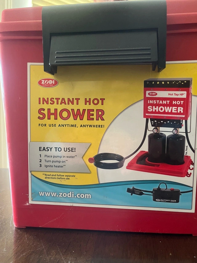 Get ready for camping with this Zodi Hot Tap HP instant hot shower system, designed for on-the-go convenience and ease of use, so you can have a hot shower wherever you are. Key features include: * Instant hot water for showers, dishwashing, and more * Portable design with a compact carrying case * Easy to set up and use with included pump and heat exchanger * Battery-powered operation for off-grid use This Zodi Hot Tap is in good working condition, perfect for camping, Overlanding, and outdoor adventures. Just a friendly heads-up: if you're seeing this ad, the shower is still up for grabs! Let me know if you're interested!