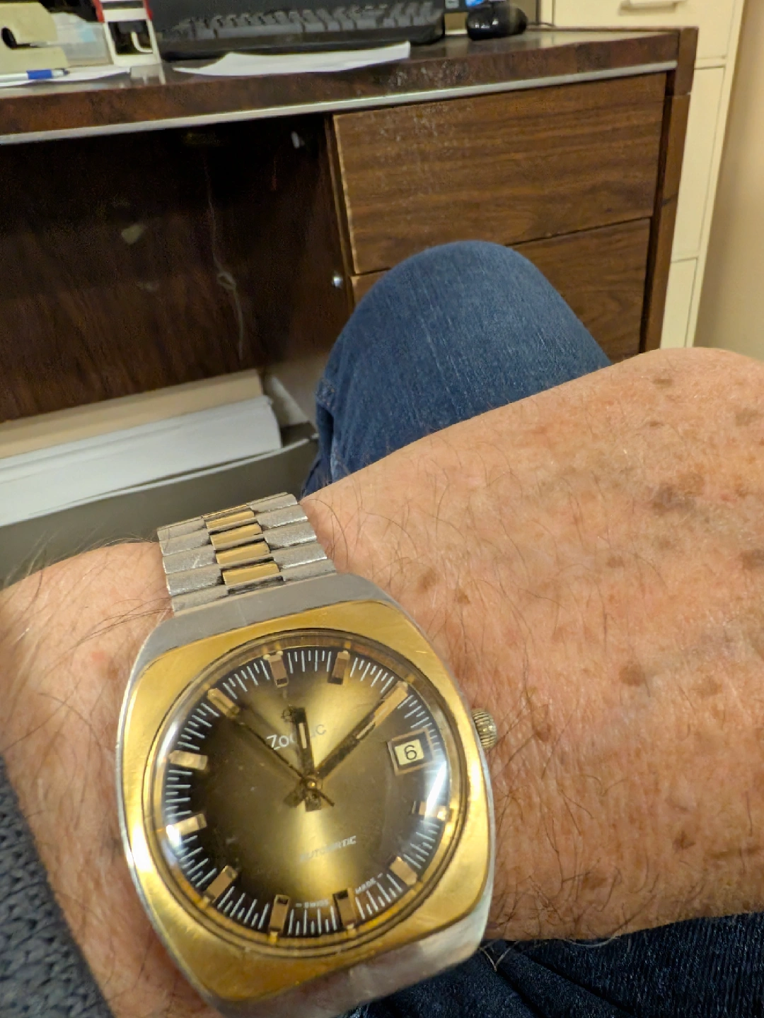 10Selling a vintage Zodiac automatic watch! It features a gold and silver band and a classic design. A stylish timepiece for any collector or enthusiast