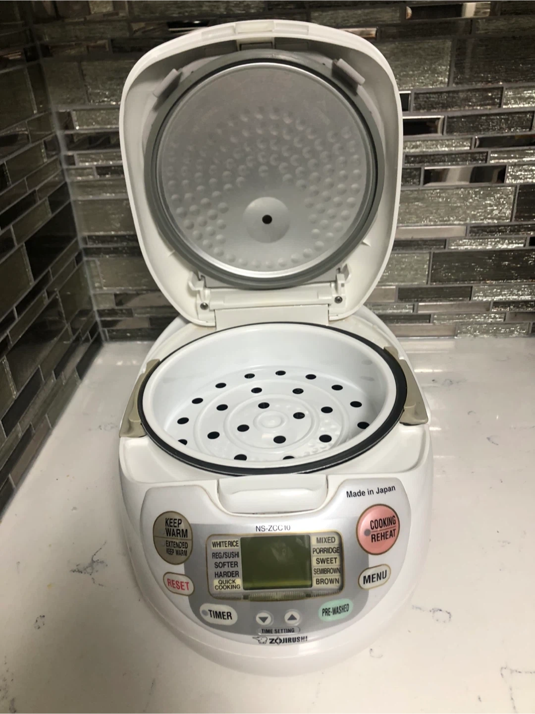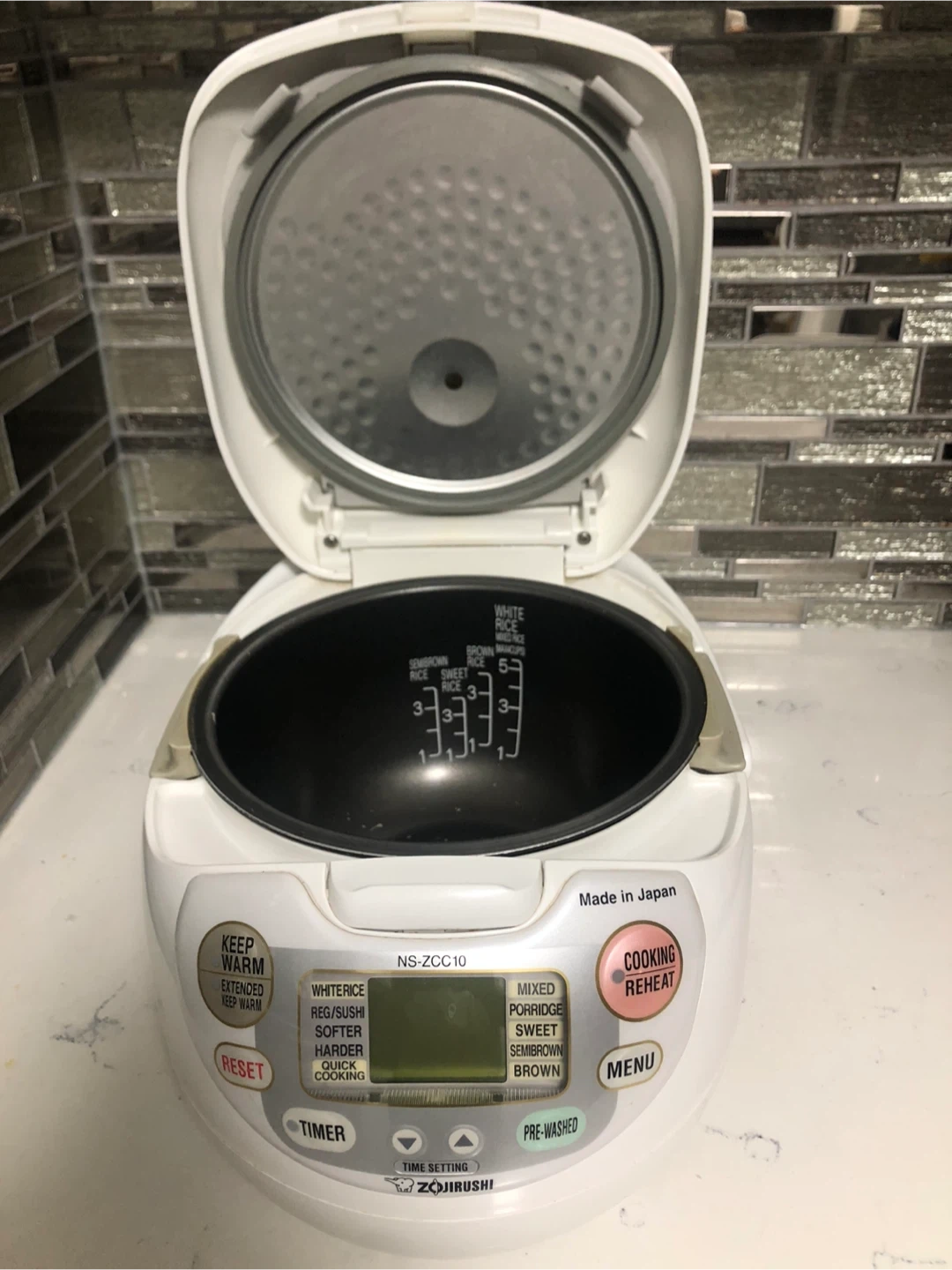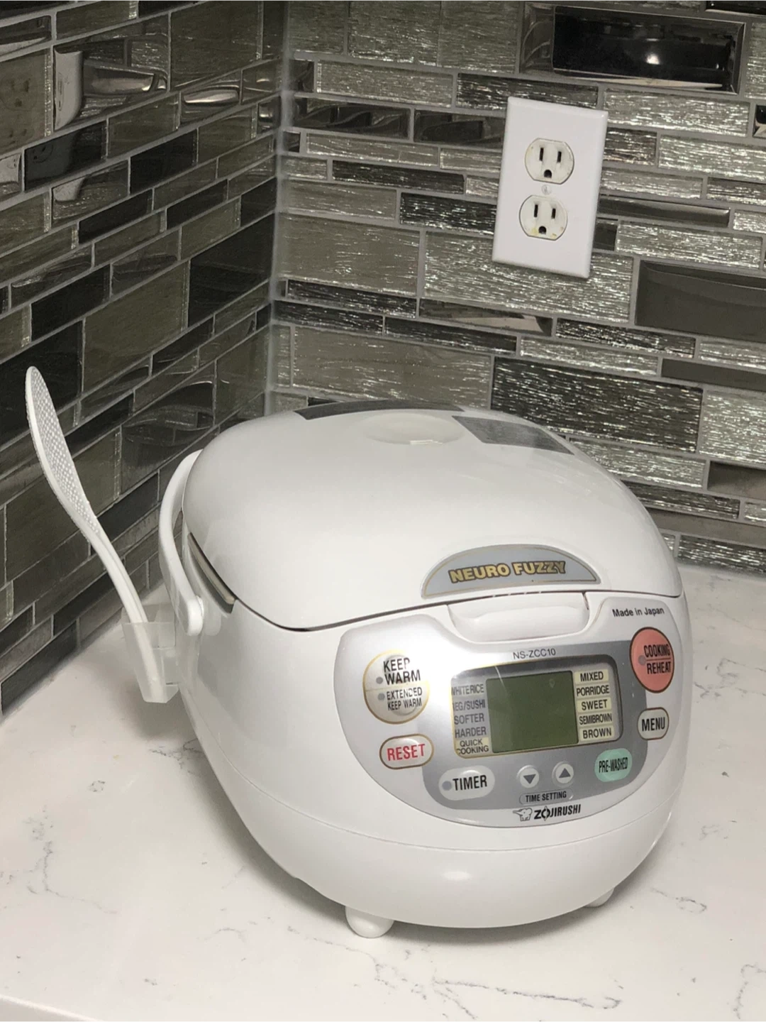 71Selling a Zojirushi Neuro Fuzzy Rice Cooker & Warmer, model NS-ZCC10. It has a 5.5 cup capacity. This rice cooker is in great condition and comes with the original box