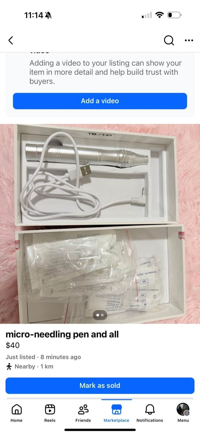 Selling a micro-needling pen kit. It comes with the pen, a charger, and several needle cartridges. The kit is in excellent condition and includes its original box