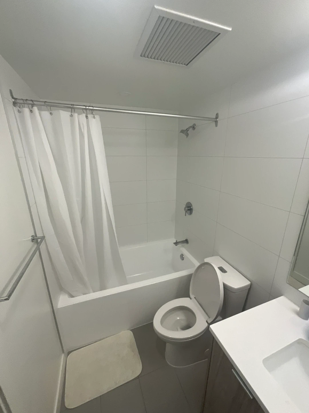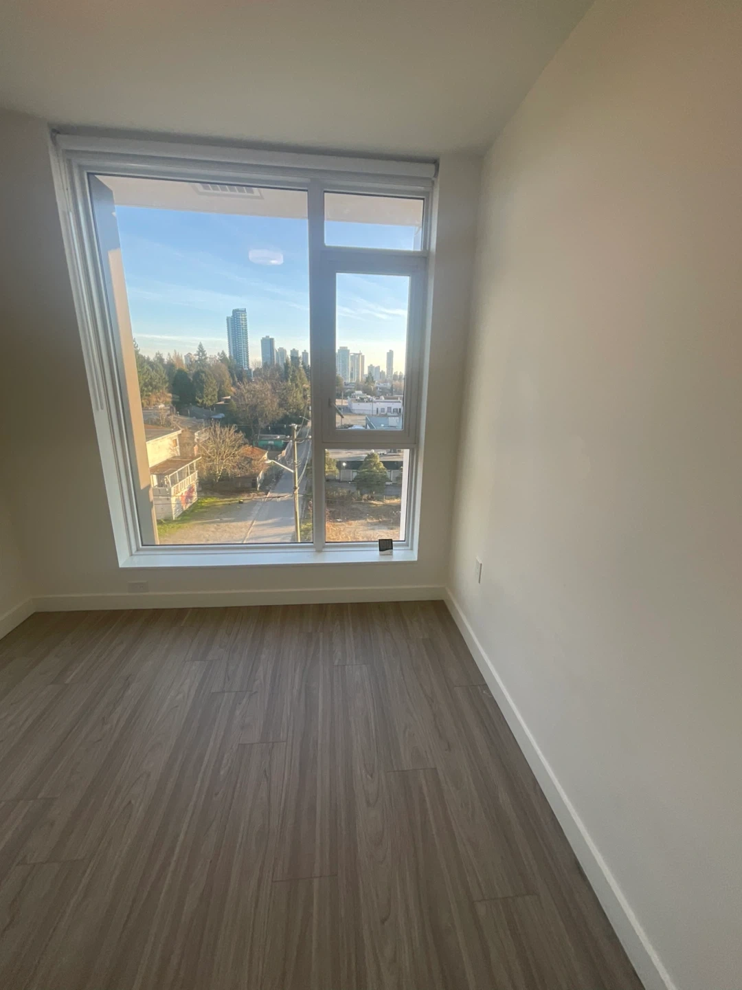 Clean, unfurnished apartment unit available. Features spacious rooms with hardwood-style flooring and large windows. Includes a full bathroom with a bathtub and shower. A nice balcony