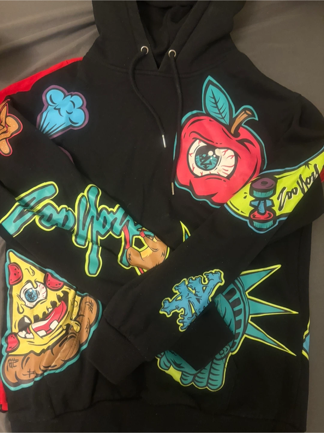 0Selling a Zoo York hoodie in size L/G! It's black with a bunch of cool graphics. Great for adding some fun to your wardrobe