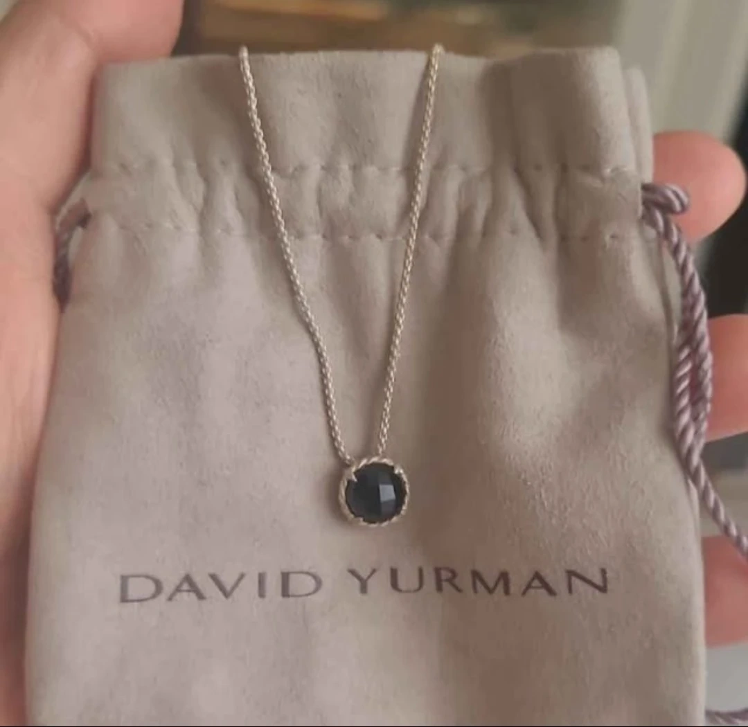This David Yurman necklace features a sterling silver chain with a faceted black onyx pendant. It comes with its original pouch. It's adjustable for a perfect fit!