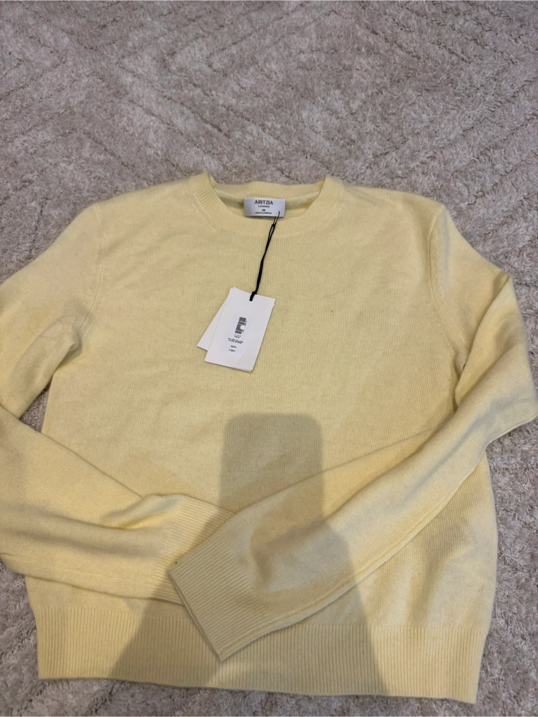 This Aritzia crew neck sweater is in a lovely butter yellow colour. It's a size XS and made of a soft material. Great for layering on cooler days!