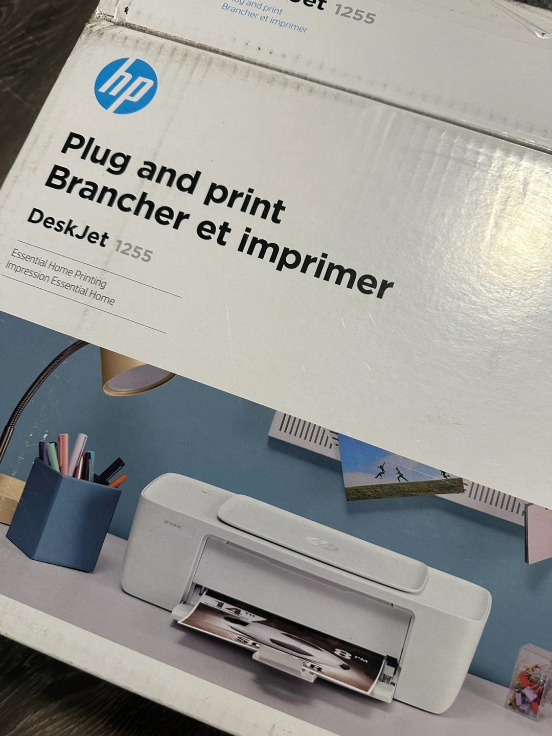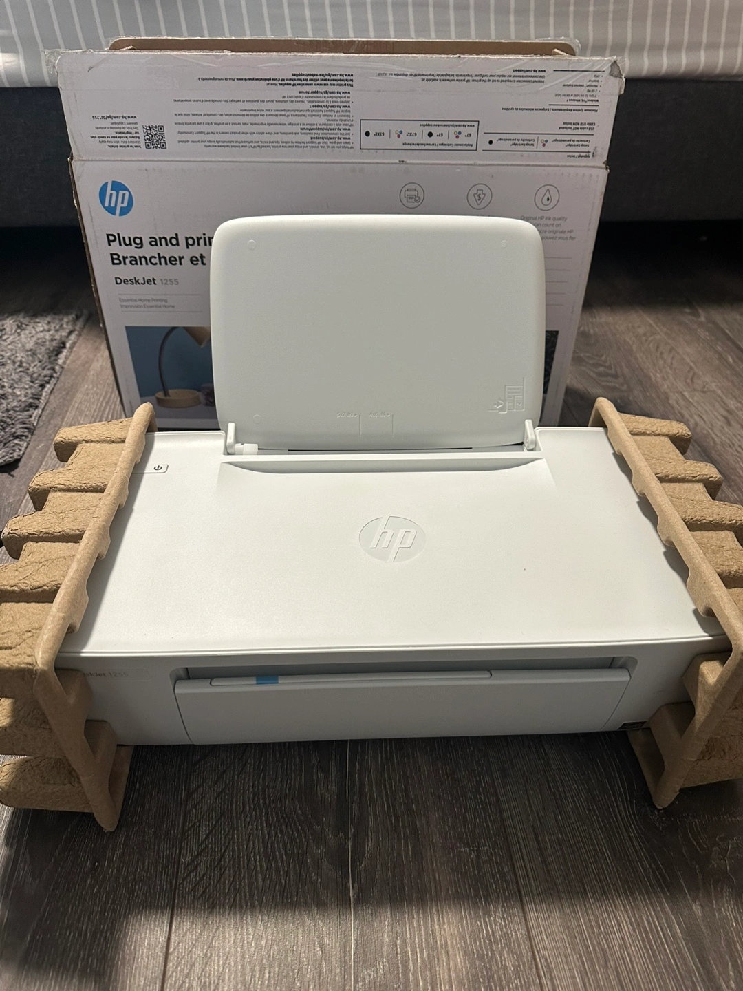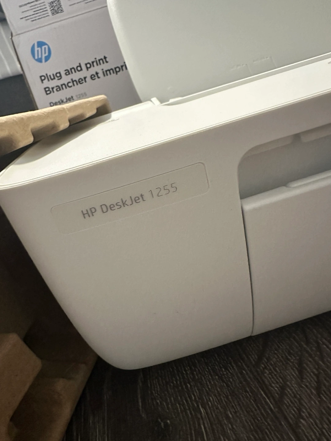 New HP DeskJet 1255 printer. Compact design. Plug and play setup. Essential home printing.