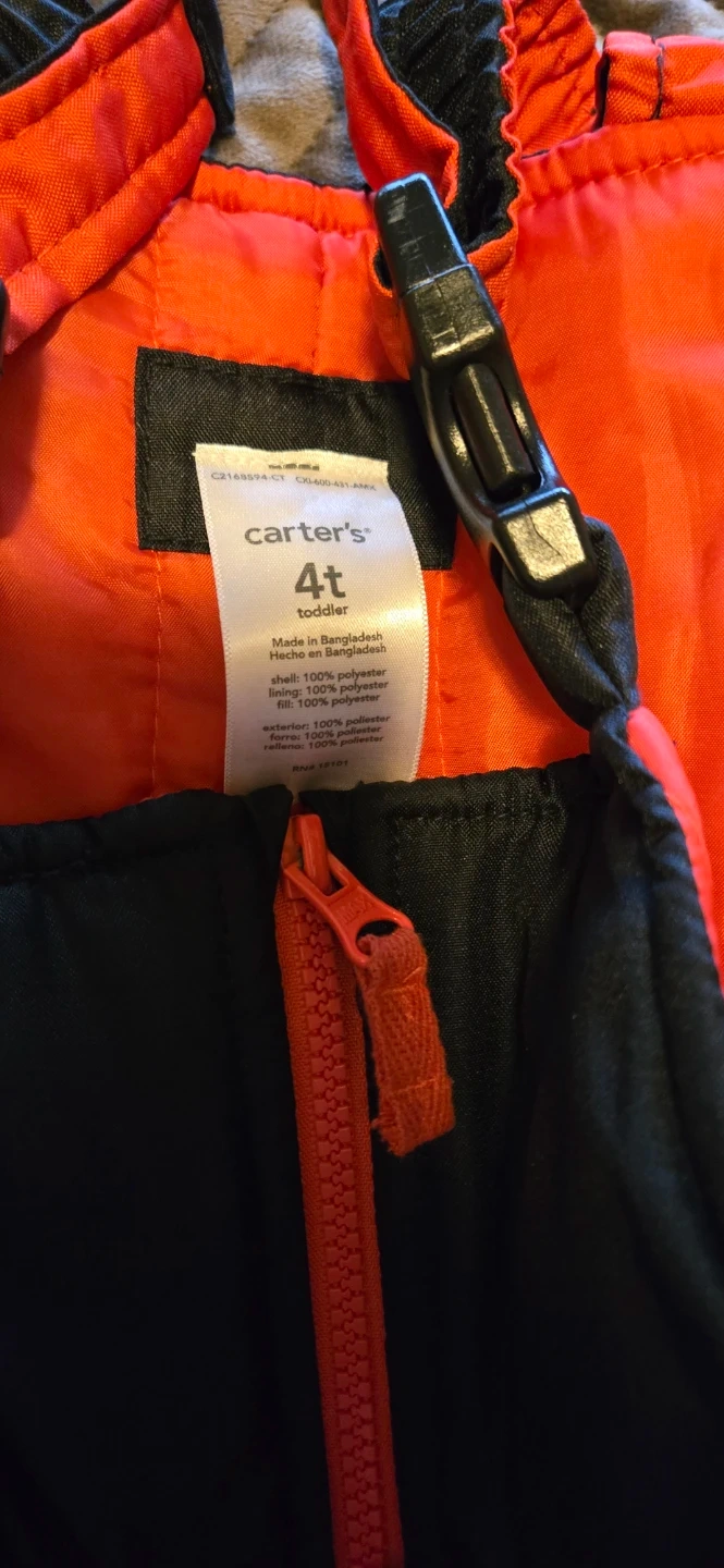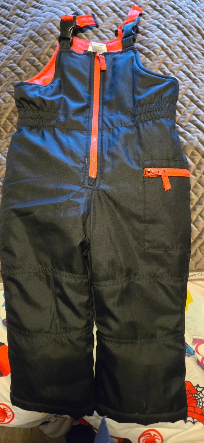 Keep your little one warm with these Carter's snow pants! They are size 4T, perfect for toddlers. The colours are black and orange. Great for playing in the snow!