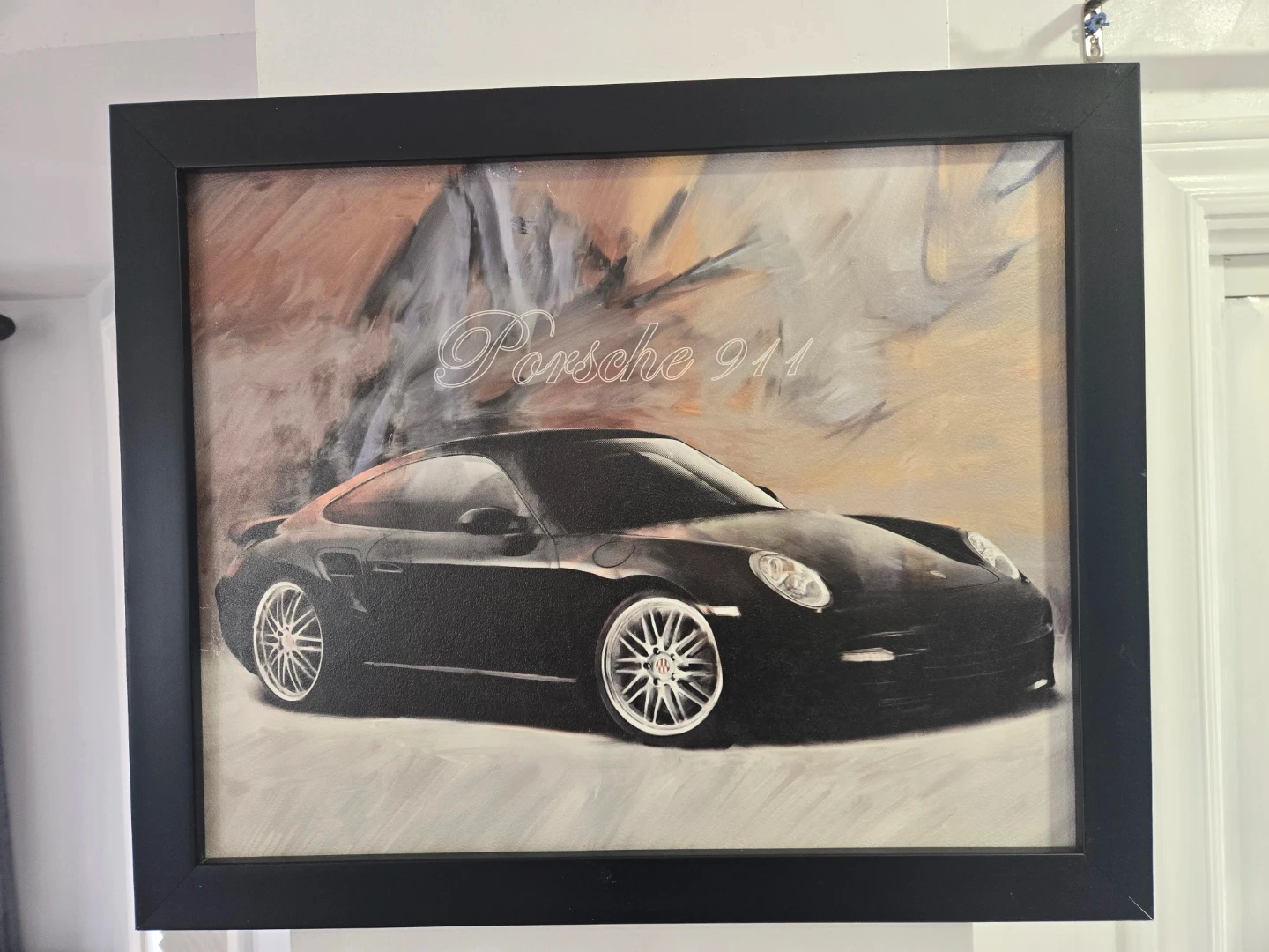 Stylish framed artwork Print featuring a Porsche 911. Clean modern look, perfect for car enthusiasts, bedrooms, or garages.