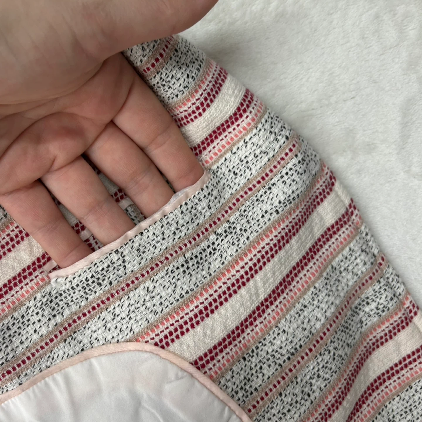 rw&co, blazer, jacket, striped, coral, red, moto, zipper, textured, knit, career, office, unique
