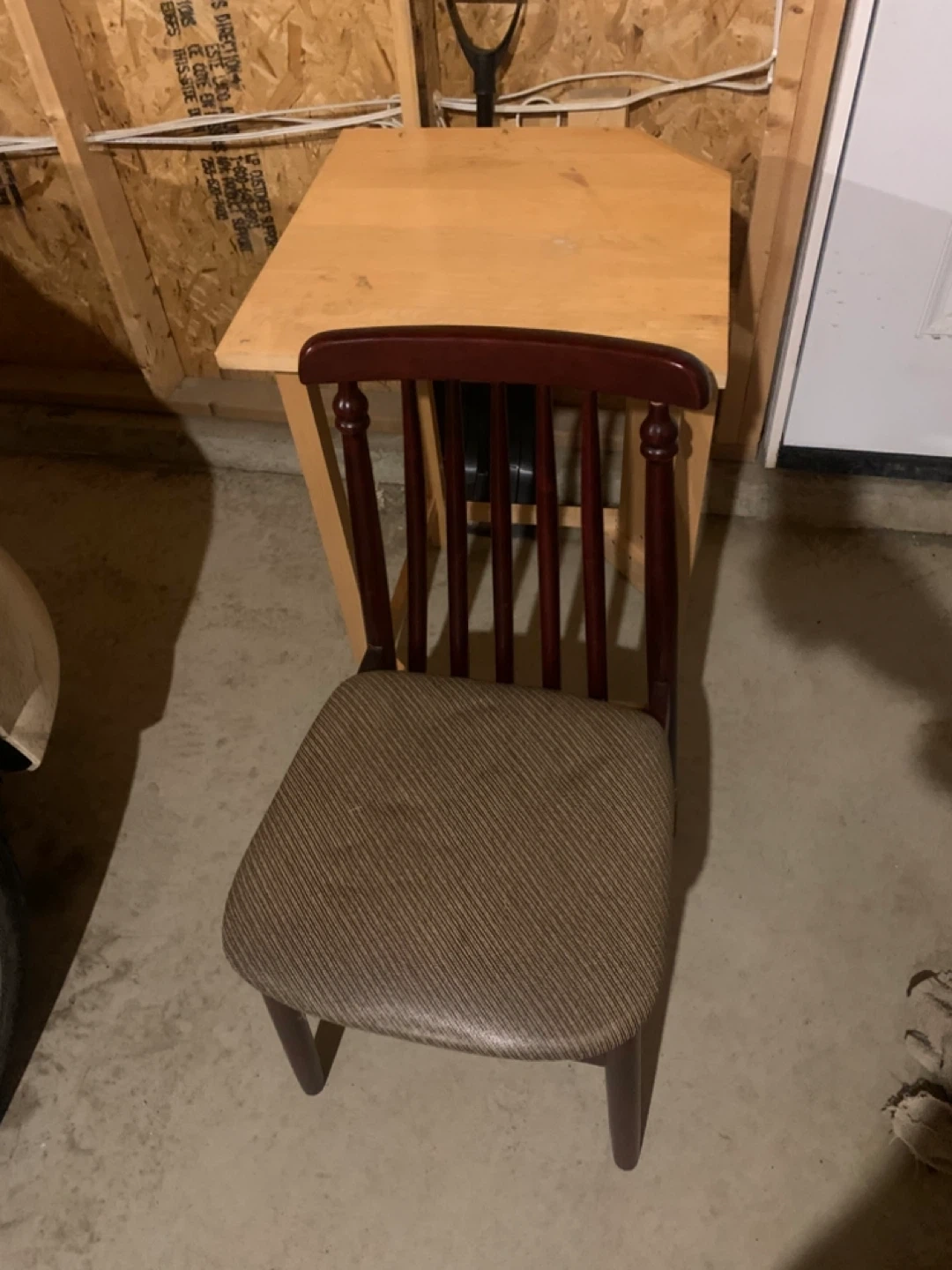 This is a two-piece set including a wooden desk and a matching chair. The desk has a light wood finish and the chair is upholstered in a brown fabric.