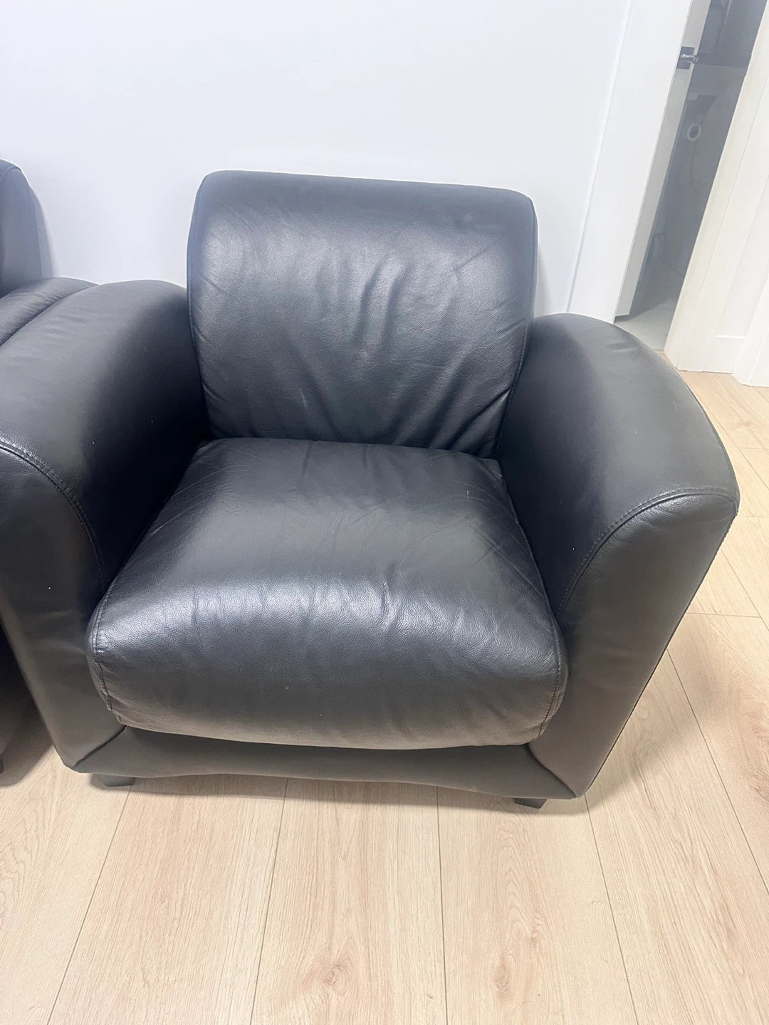 Black Leather Sofa and Armchair Set