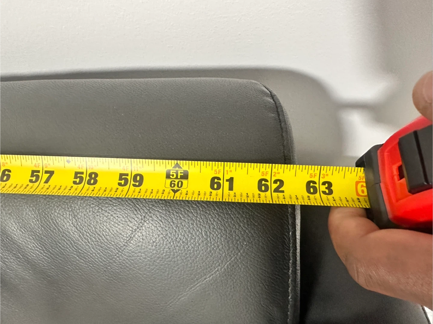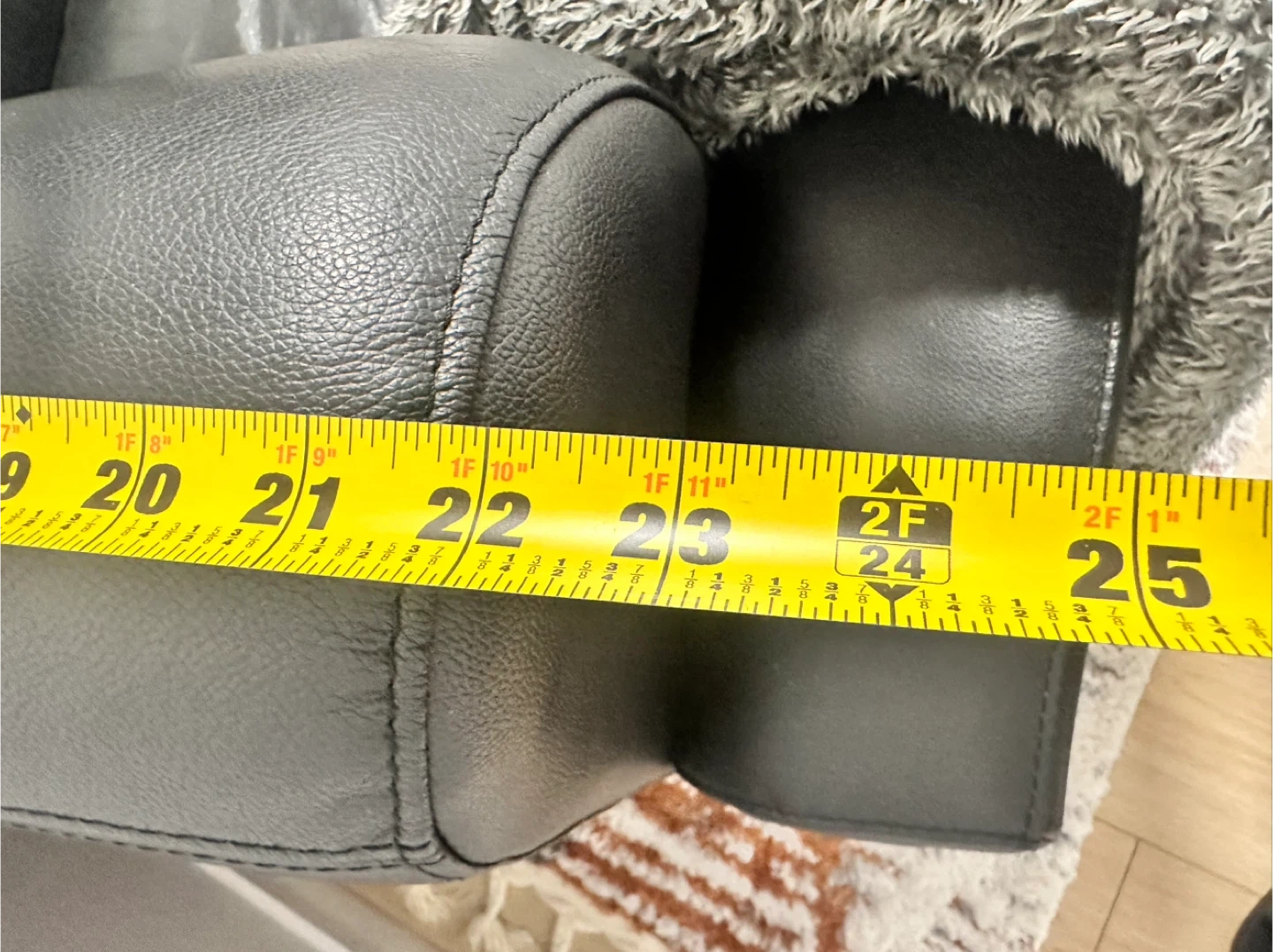 This is a black leather sofa and an armchair. The sofa measures approximately 80 inches in length. The armchair is about 35 inches wide. Both pieces are made of genuine leather.