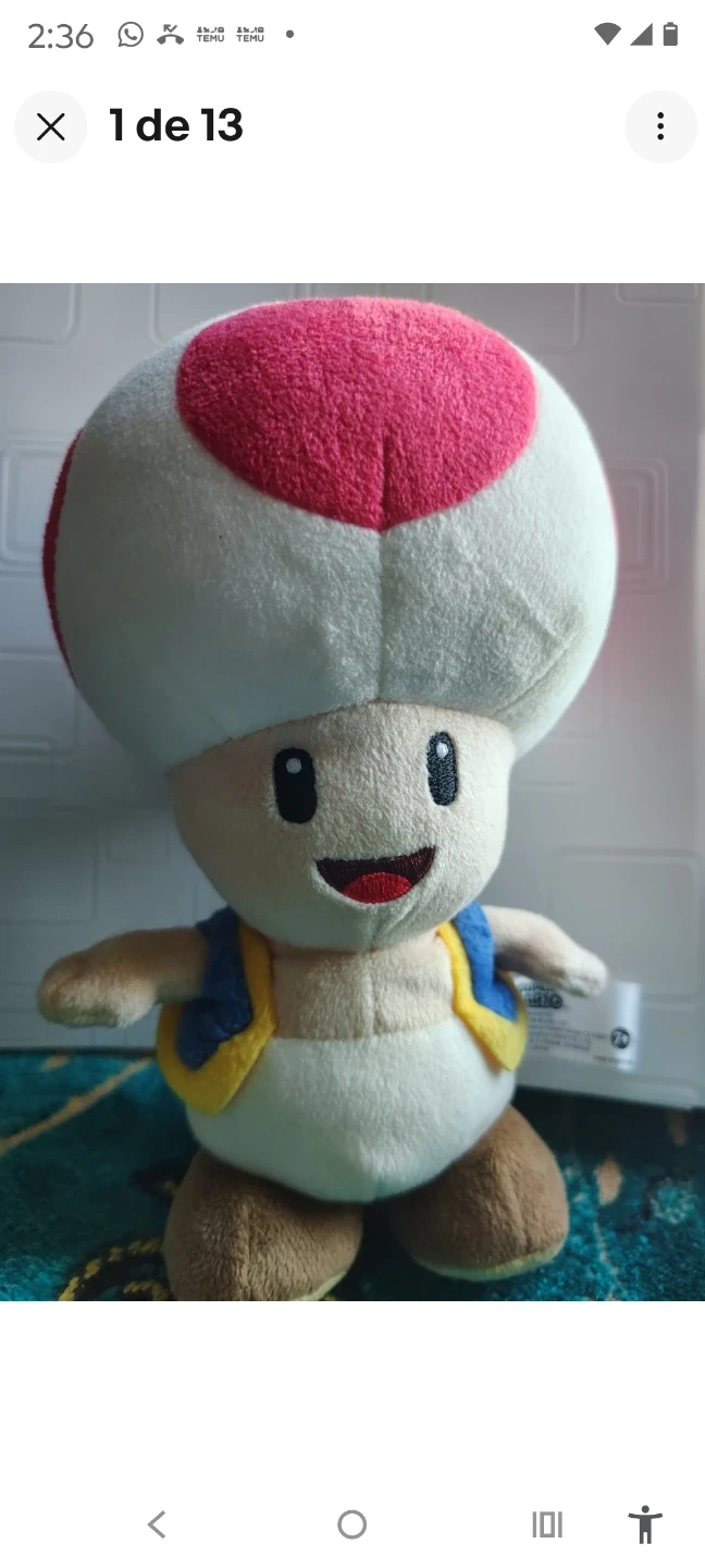 This is a plush toy of Toad from the Super Mario series. It's soft and huggable. Measures approximately 8 inches tall. A fun collectible for any fan!