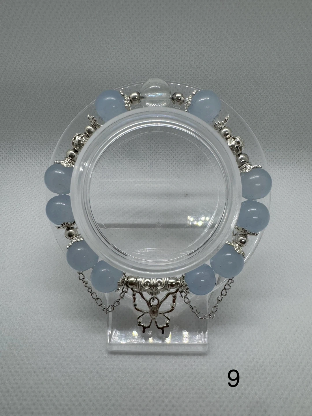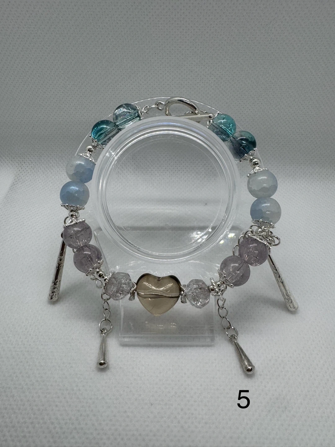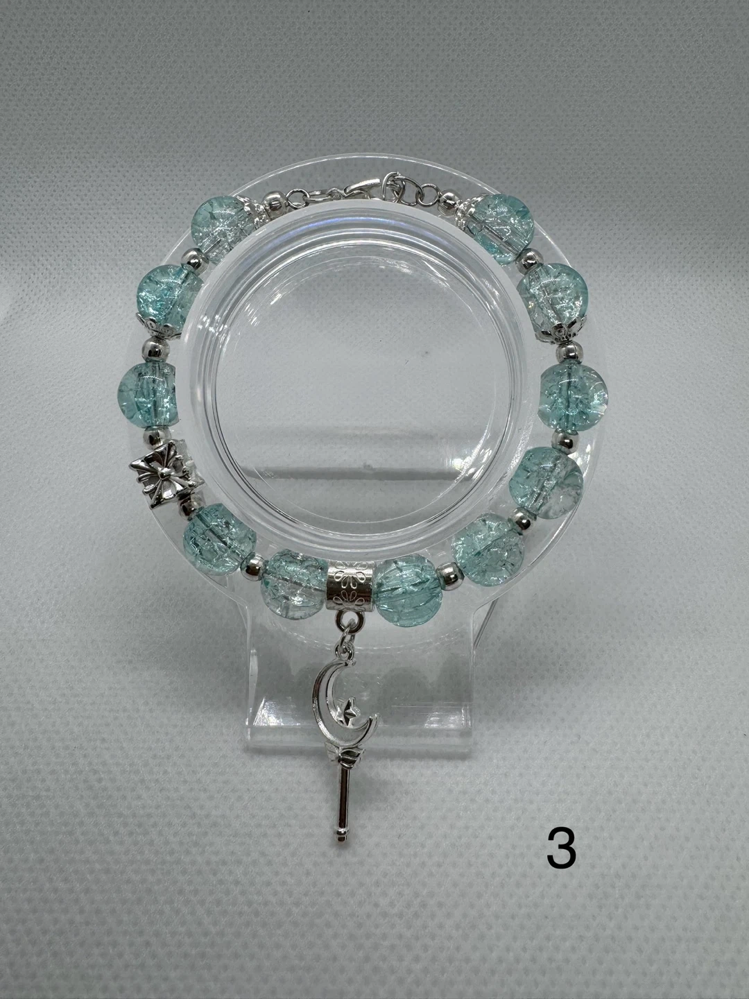 Blue and Yellow Crackle Glass Beaded Bracelet with Cross Charm