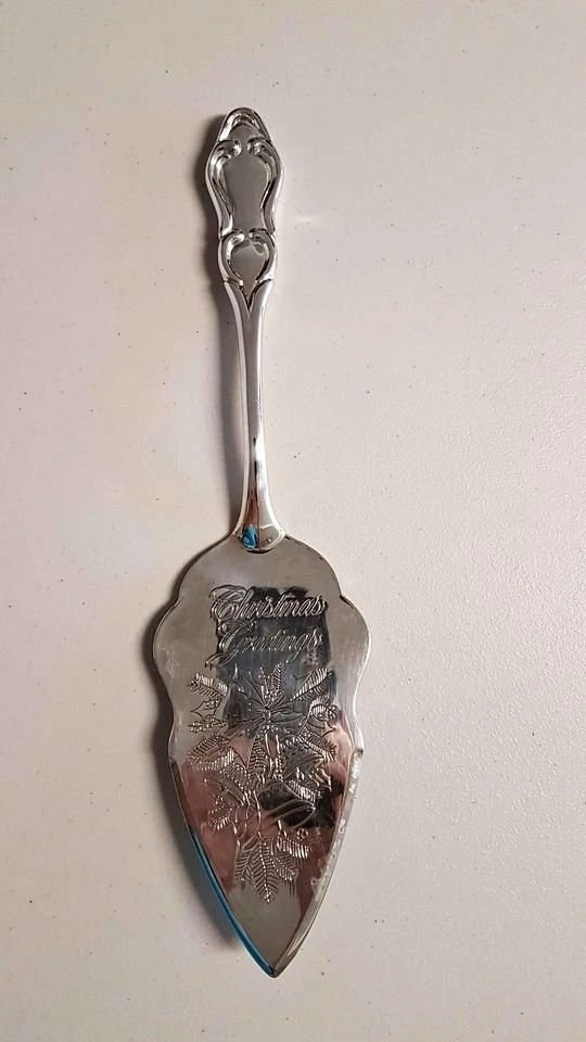 Embossed "Christmas Greetings" Silverplate Dessert Server