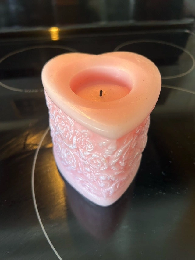 The candle runs on two "C" batteries (not included). Has flickering motion, looks like it is lit. Cannot be lit with match, no flame, so safe if left on. Candle does not burn, so it lasts for years. Pretty design. Pickup in Kanata close to Moodie Dr and Queensway. No delivery.