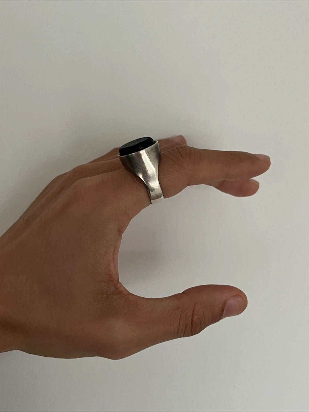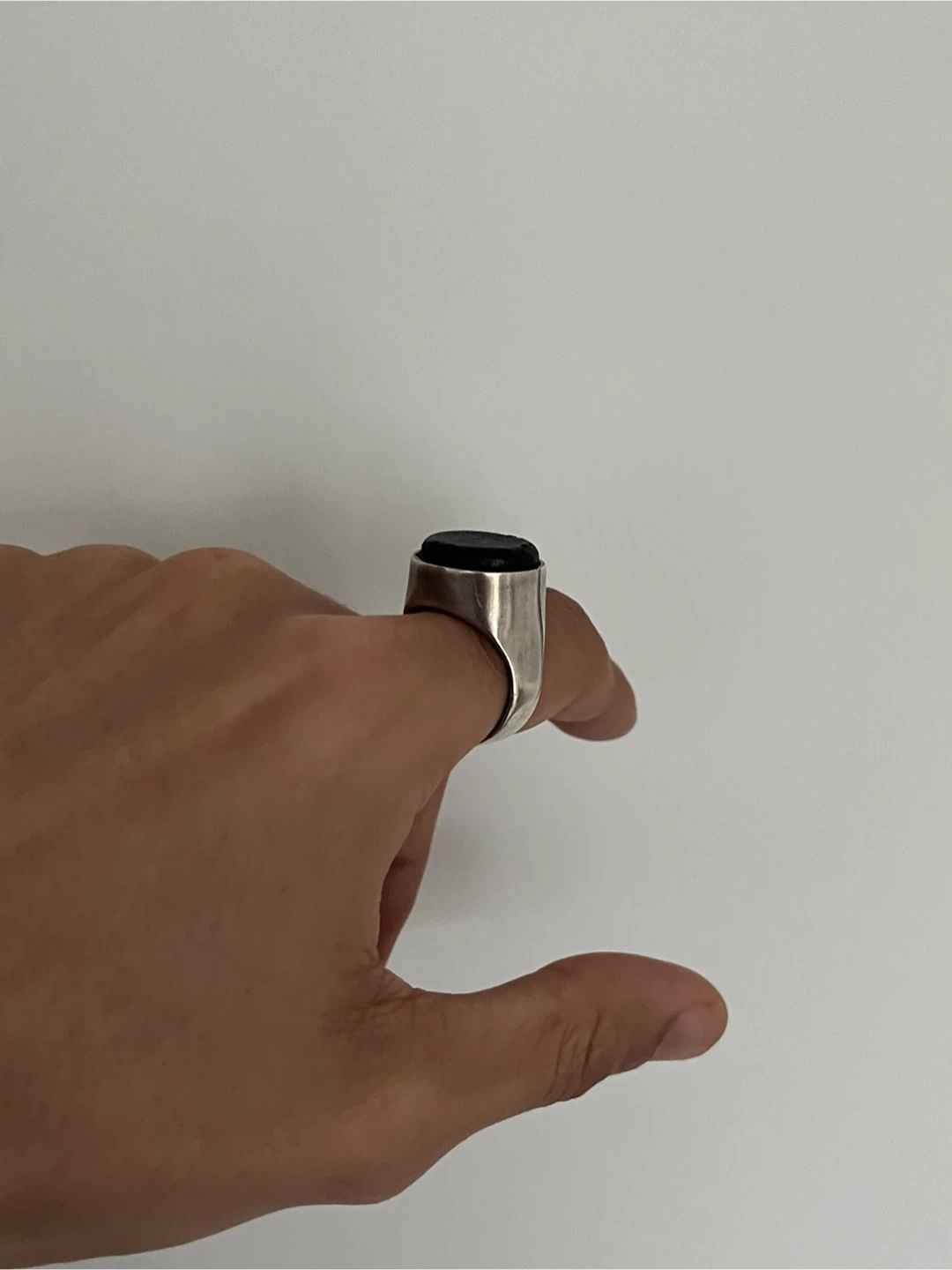 A stunning and chic solid sterling silver ring with a natural, untreated charcoal bulb stone on top. Bought it from Made You Look 2 years ago, I can’t recall the designer. Retails for $300+ I didn’t wear it as much, requires someone who enjoys rings and a subtler bold statement. Ring size is 9 but can also fit 9.5