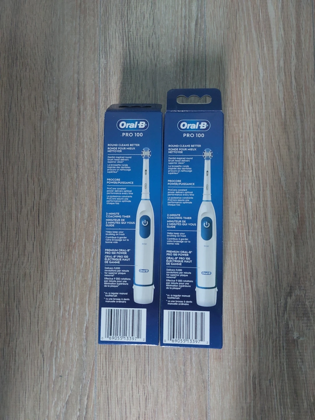 - Each comes with 1 handle, 1 brush head & 2 AA batteries