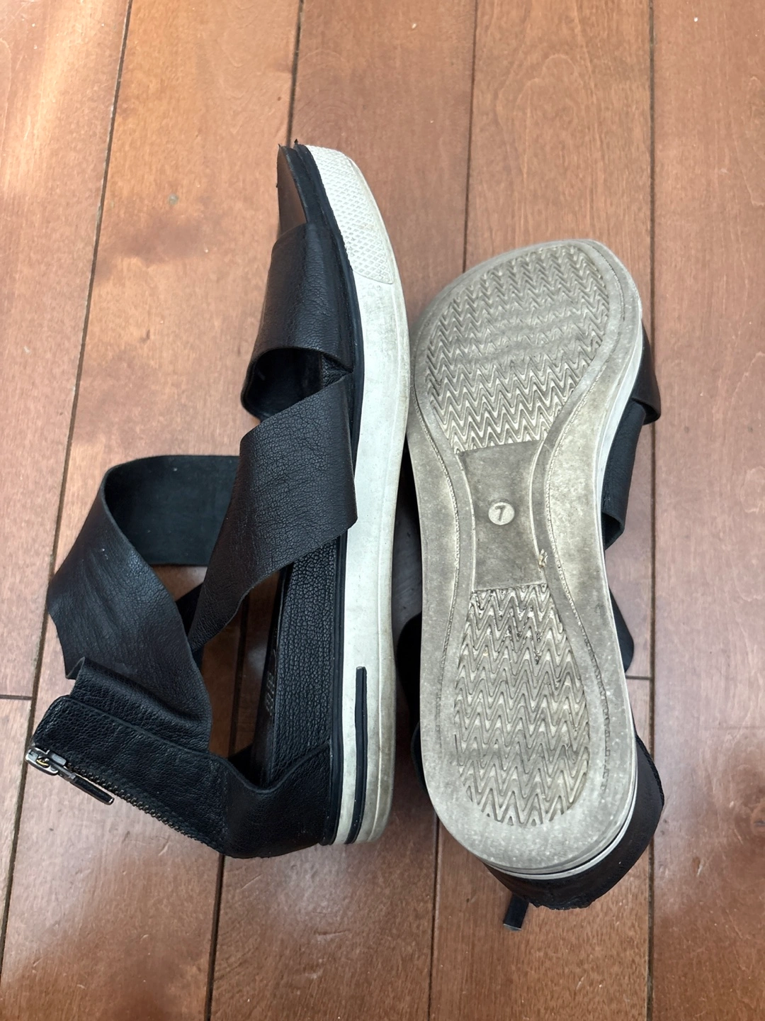 Eileen Fisher Black Leather Zipper Ankle Strap Sandals Size 7