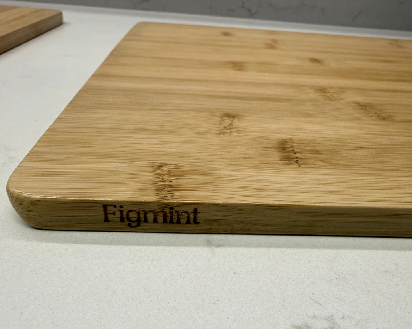 Figmint brand bamboo cutting board. It's made of natural bamboo.