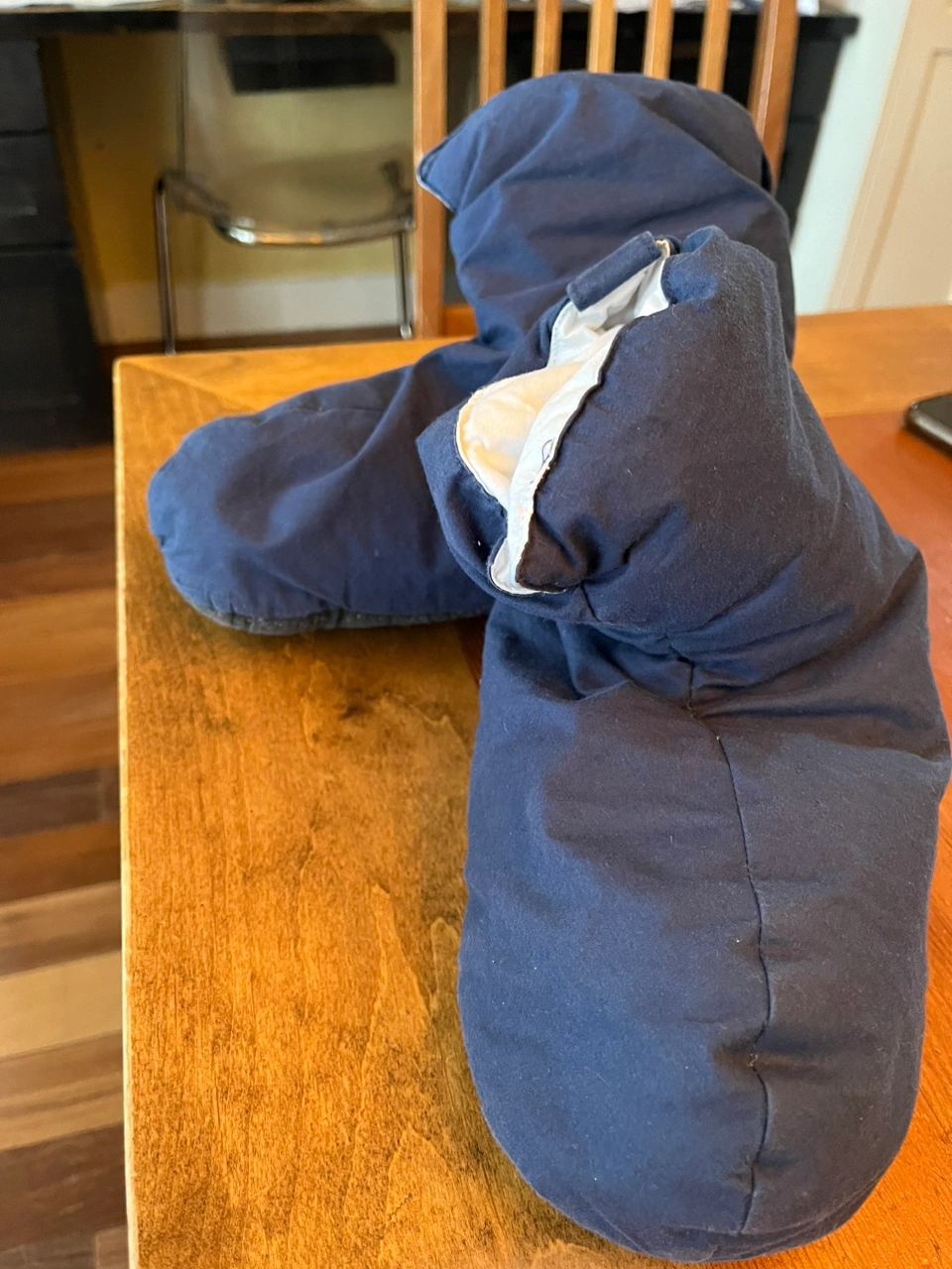 They’re like sleeping bags for your feet! They have grippy things on the bottom so you don’t slide all over the floor. Women’s size 7.