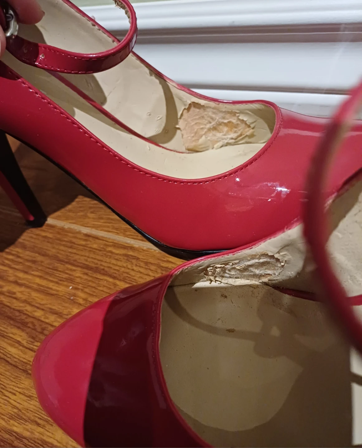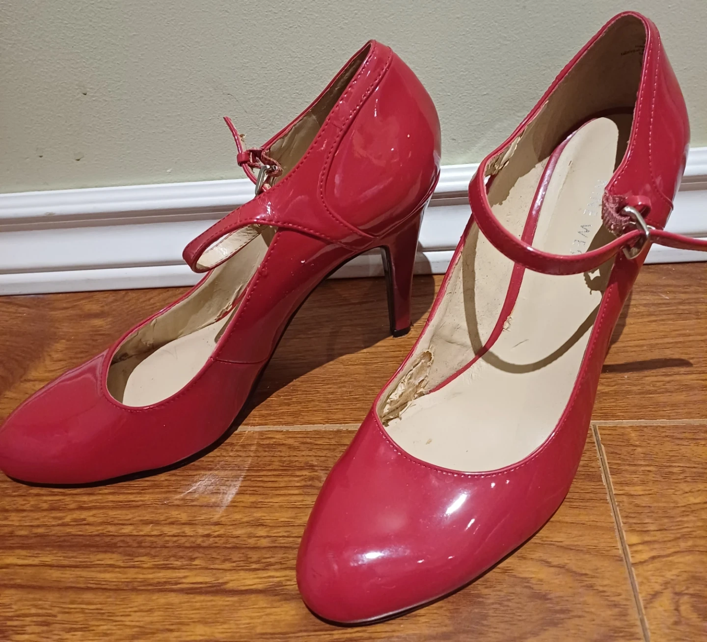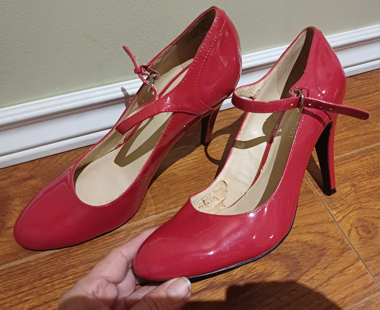FREE Shiny red patent leather Mary Jane heels from Nine West. Some wear and tear on the inside lining as pictured. Heel height is approximately 4 inches.