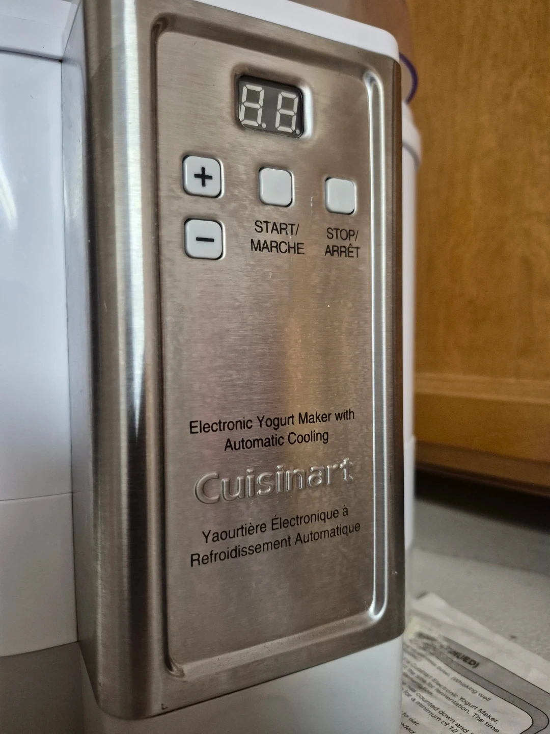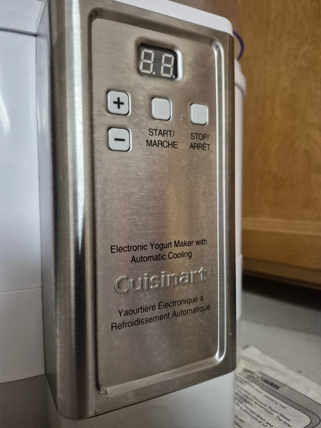 This Cuisinart electronic yogurt maker features automatic cooling. It allows for fermentation and has a digital display for timing. Makes homemade yogurt at home! Can you imagine homemade yogurt.... at home.