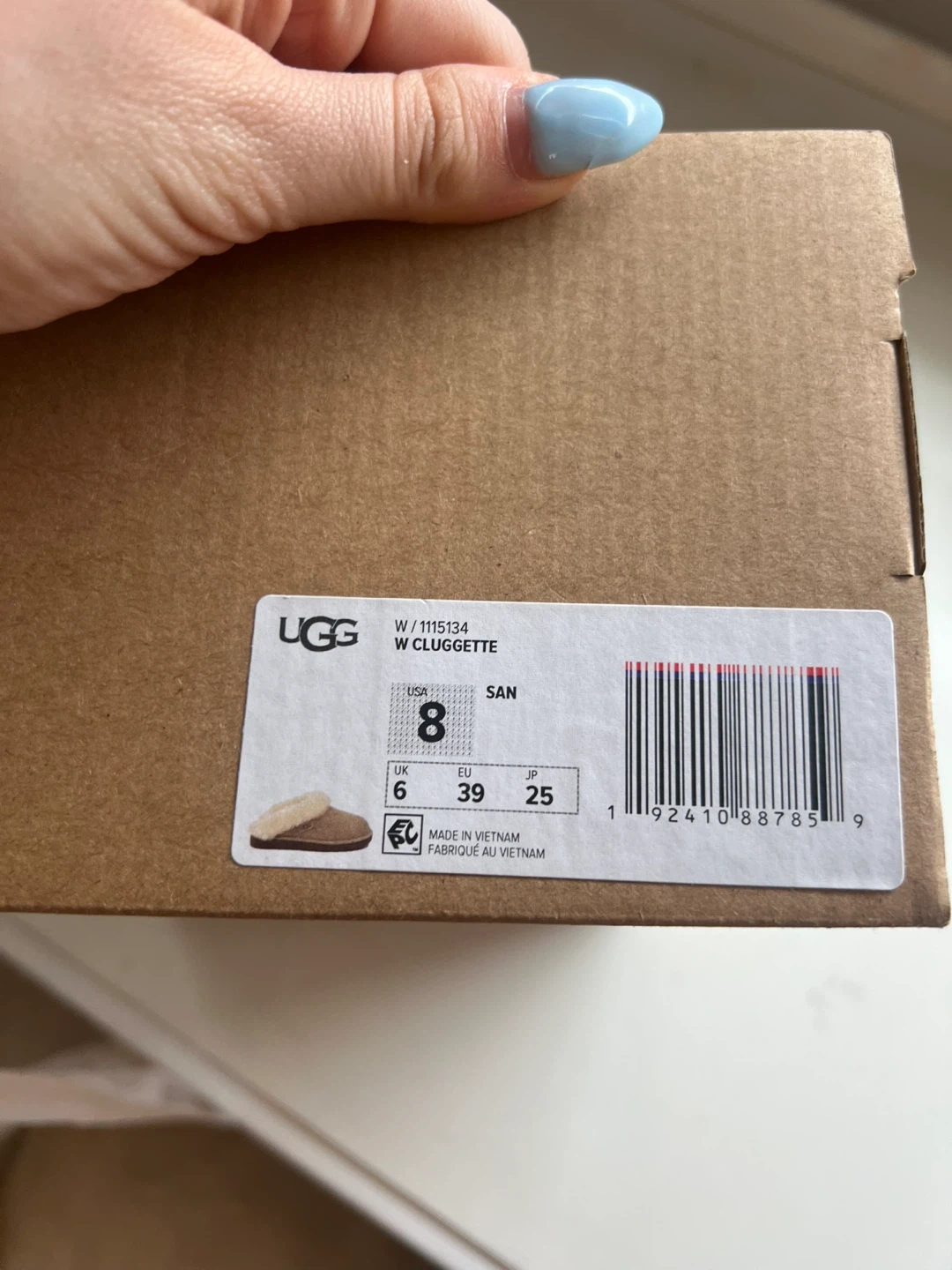 Brand new UGG W Cluggette slippers in beige. Women's size 8 (EU 39, JP 25). Includes original box.