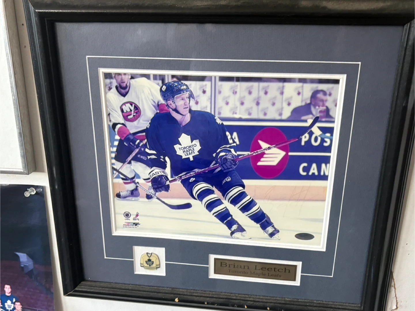 Framed photo featuring Brian Leetch in his Toronto Maple Leafs jersey. It's matted and ready to hang. Perfect for any hockey fan's collection!