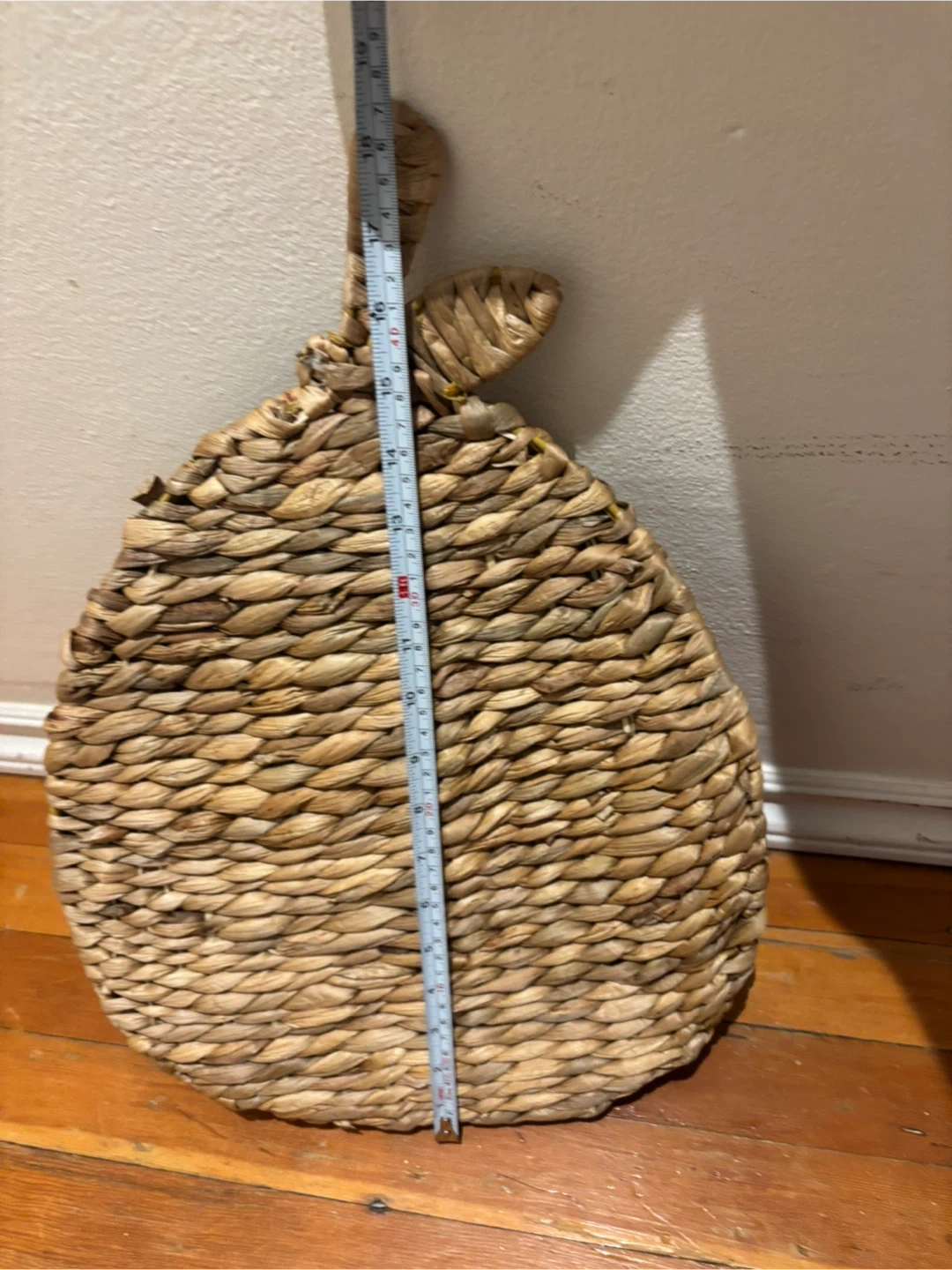 Selling a woven basket! Charming decorative piece. Could hang in a kitchen, bathroom, living room or bedroom to house remotes, towels- whatever you’d like. Hangs with screws (not included)