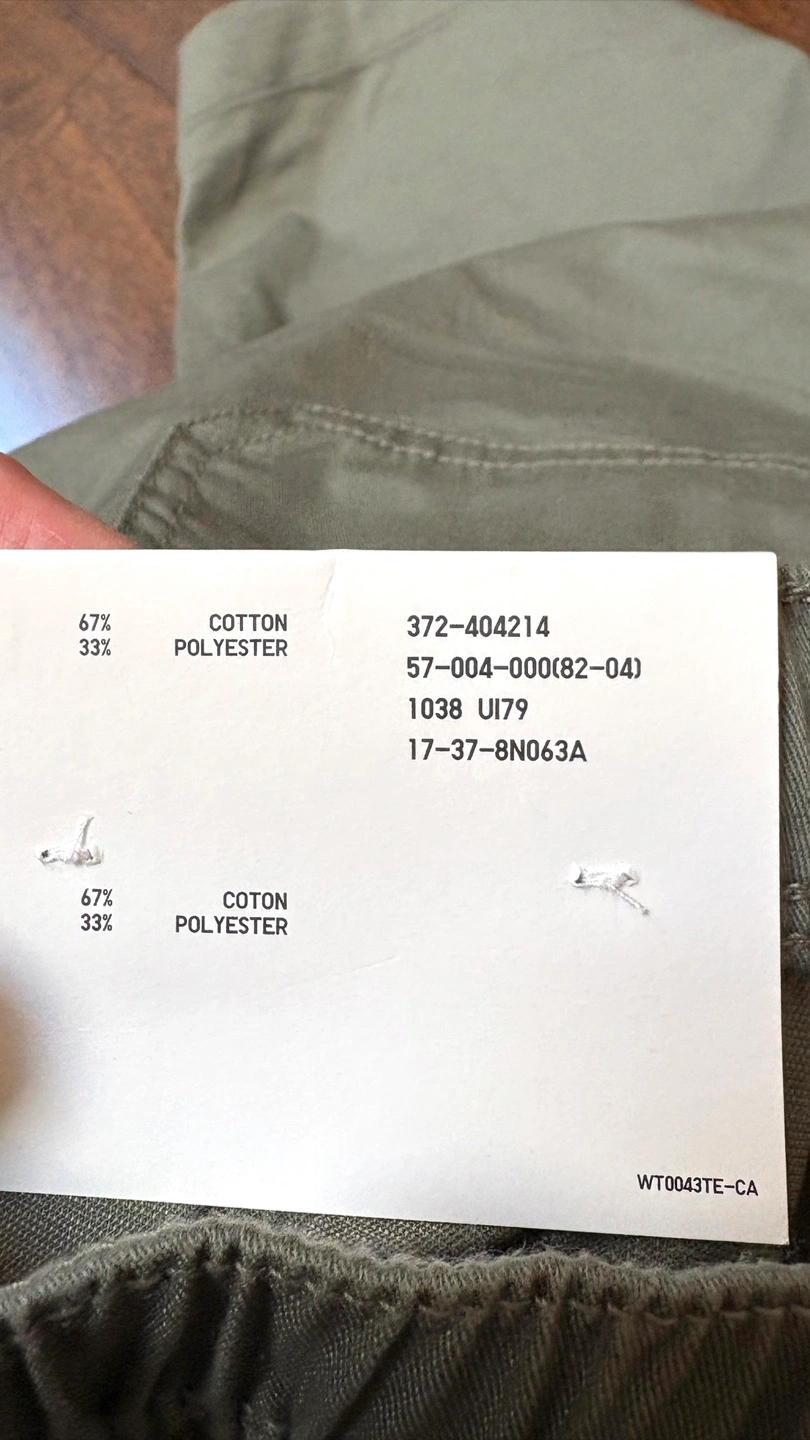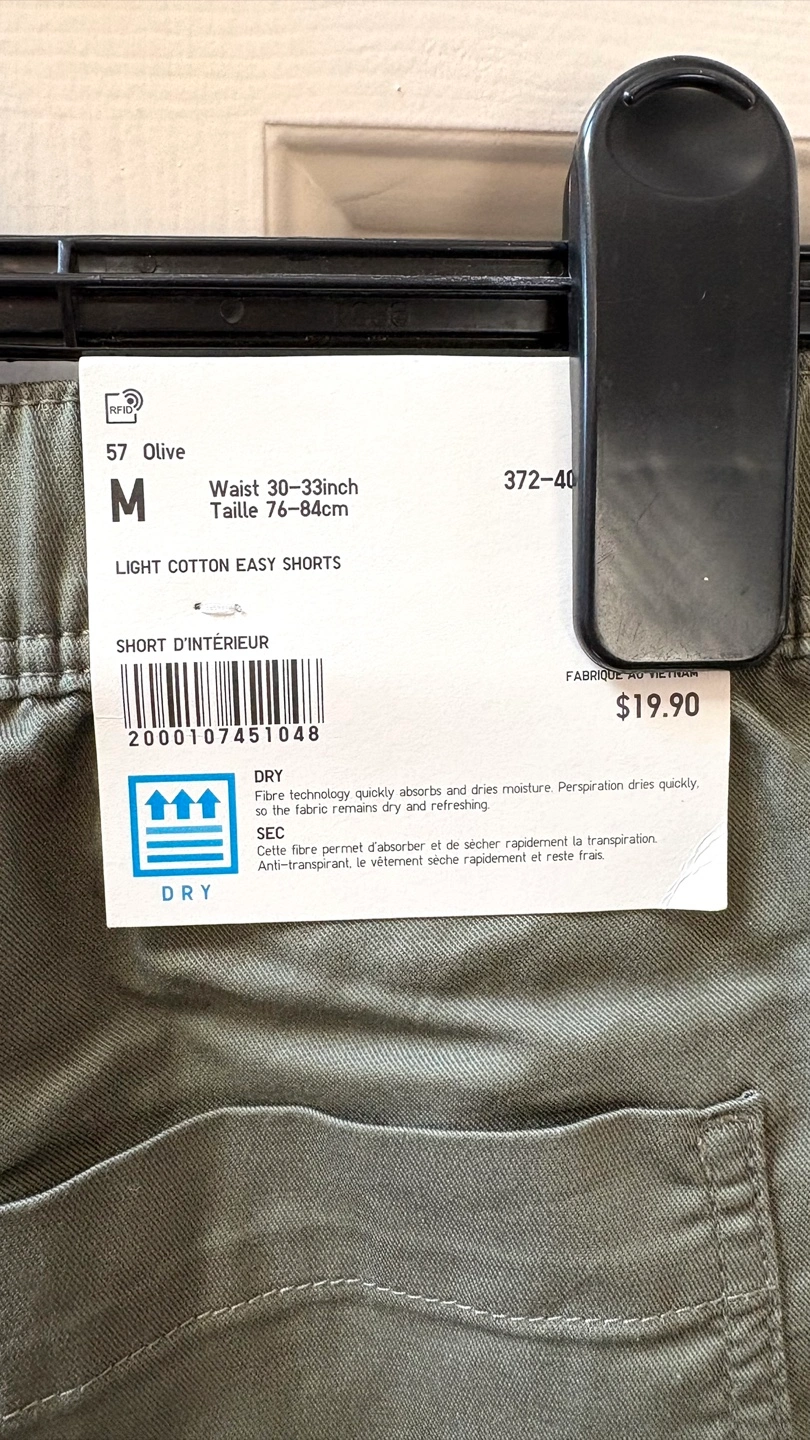 These Uniqlo shorts are made of a 67% cotton and 33% polyester blend.