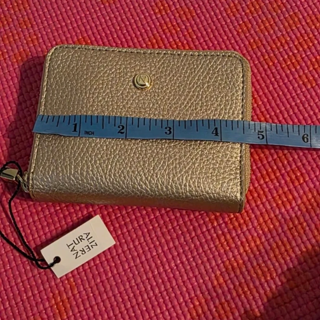 Brand new, with tag, leather zip-around wallet with multiple card slots and an ID window, from Naturalizer. Measurements are in pictures. A great wallet to keep your essentials organized!