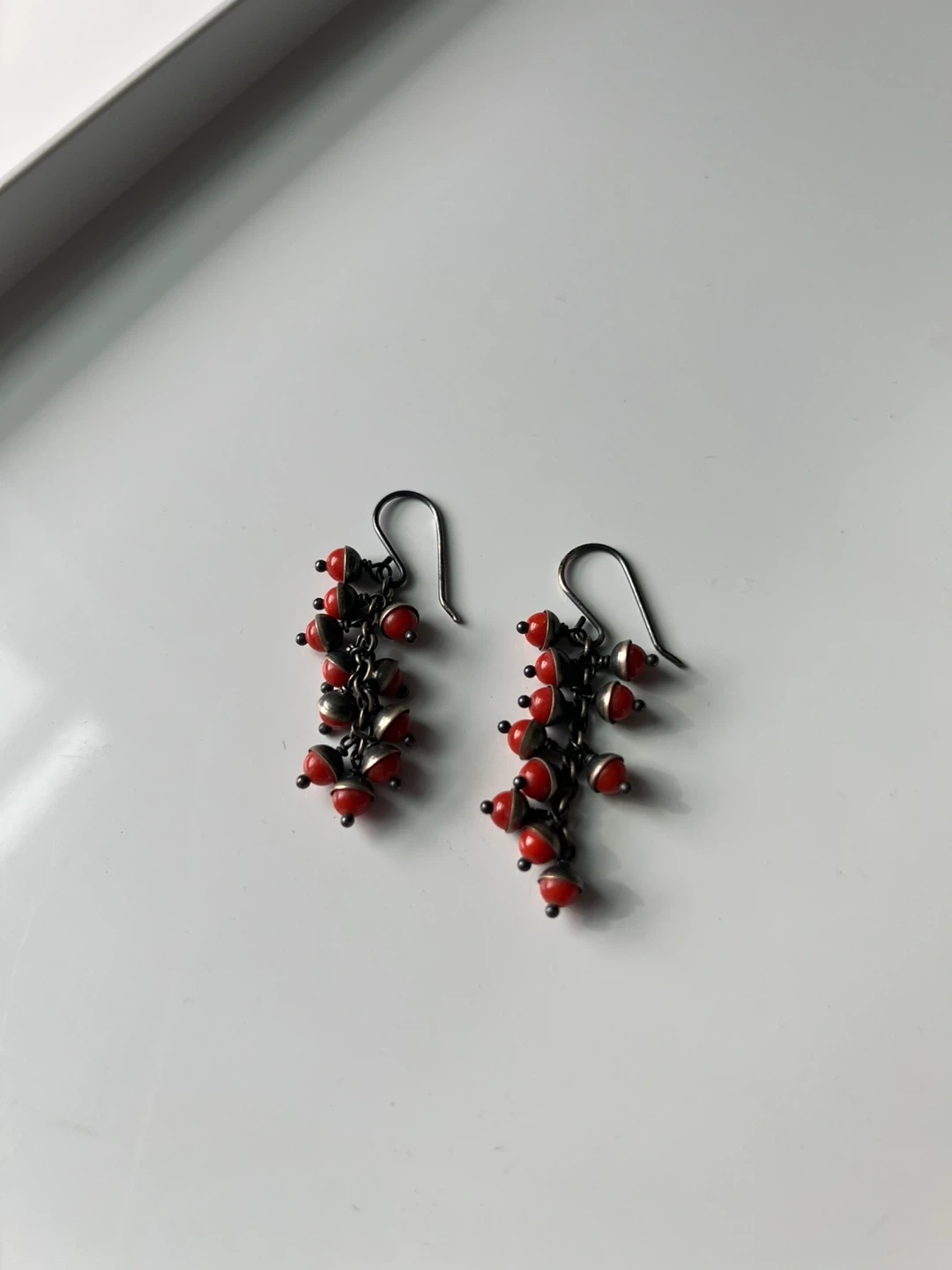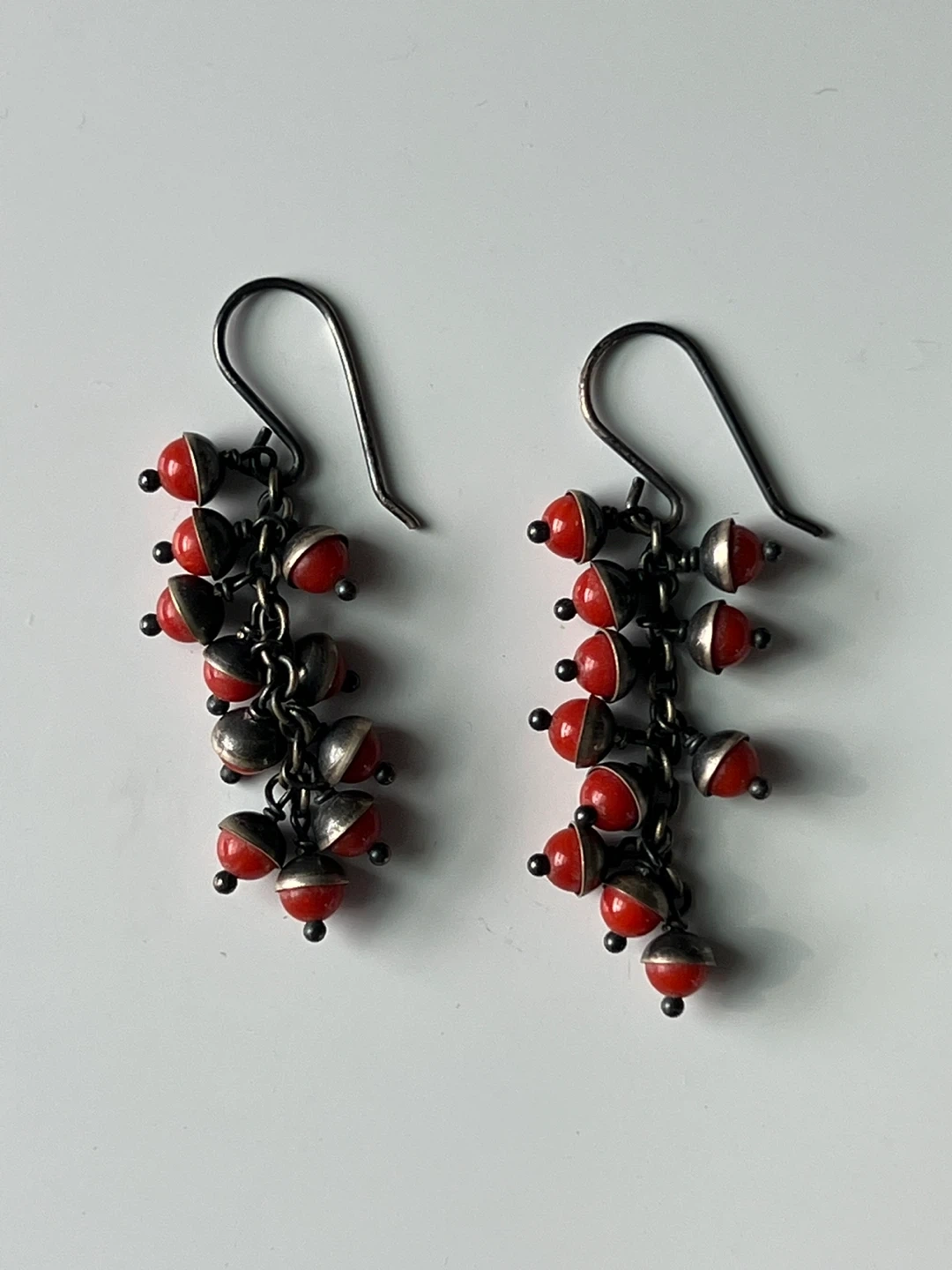 Silver Earrings with Red Stones