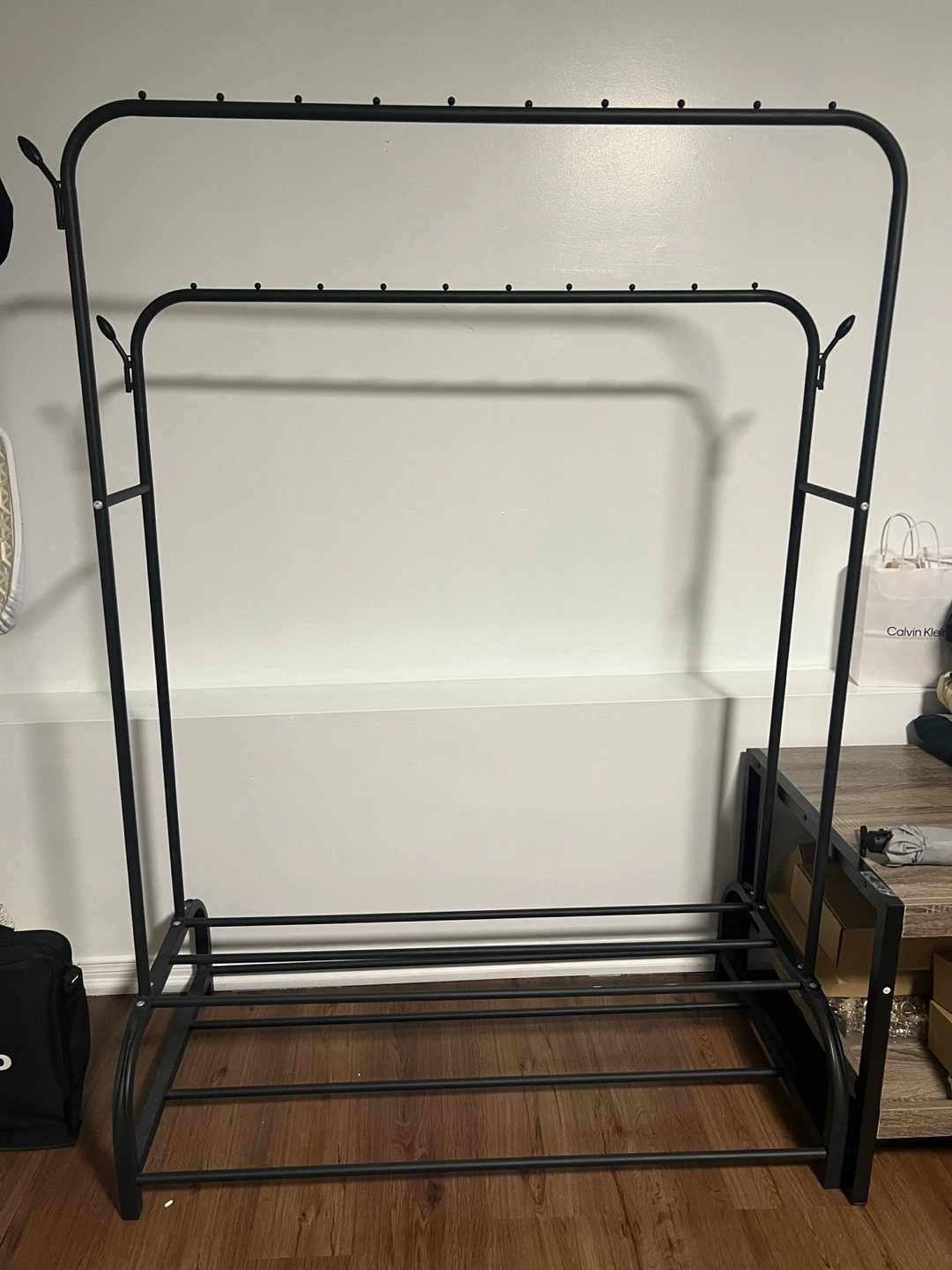 Selling a sturdy black metal clothes rack! It's in great shape and ready to hold all your clothes. Perfect for adding extra storage to your closet or creating a pop-up shop vibe in your room