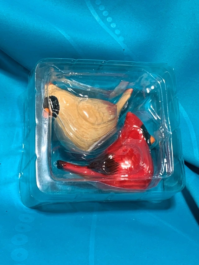 Offering a set of Hallmark cardinal salt and pepper figurines, including one red and one tan cardinal. They are in excellent condition with vibrant colors and intricate details, and come in the original box. Willing to trade for Spider-Man stuff or rolled pennies. If you're seeing this ad, the cardinals are still waiting to fly to their new home!