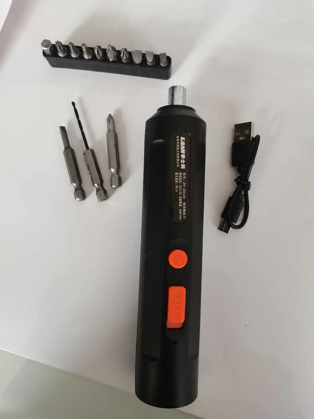 This cordless screwdriver comes with multiple bits and a USB charging cable, making it a versatile addition to any toolkit. This item is in used condition and ready for its next project.