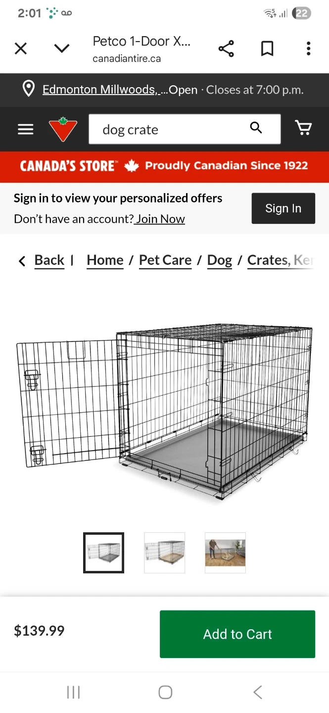 Selling a Petco 1-Door dog crate. Excellent condition. Used.for my great pyranese. Very large and roomy. Foldable. Picture is from canadian tire. Mine is folded up in my storage room.
