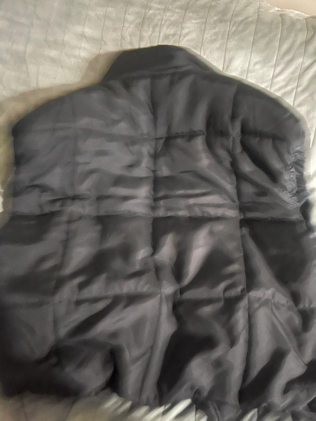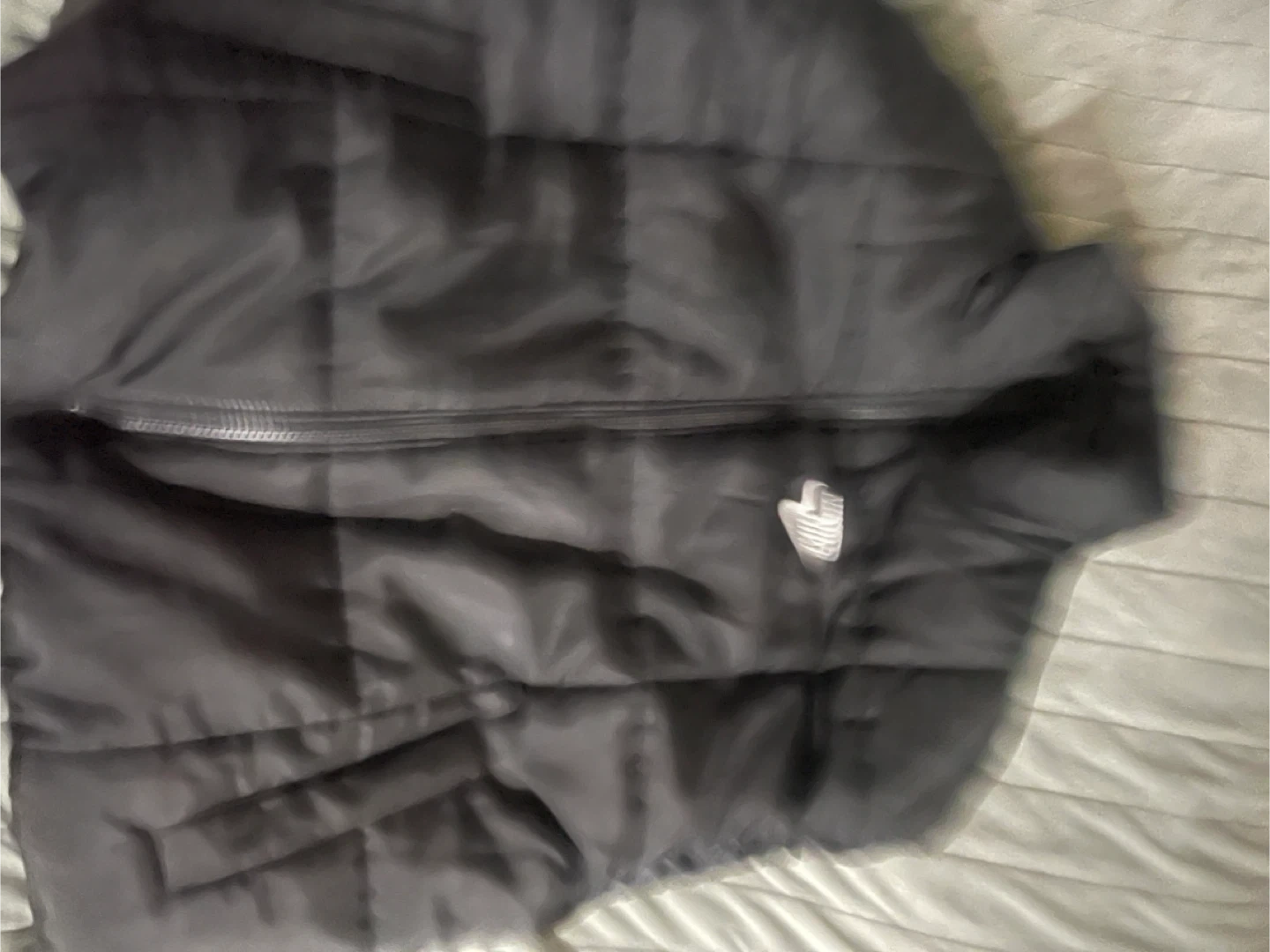 This is a black Nike puffer vest. It's a sleeveless jacket with a full zip closure. Made with synthetic fill for warmth. Excellent for layering!