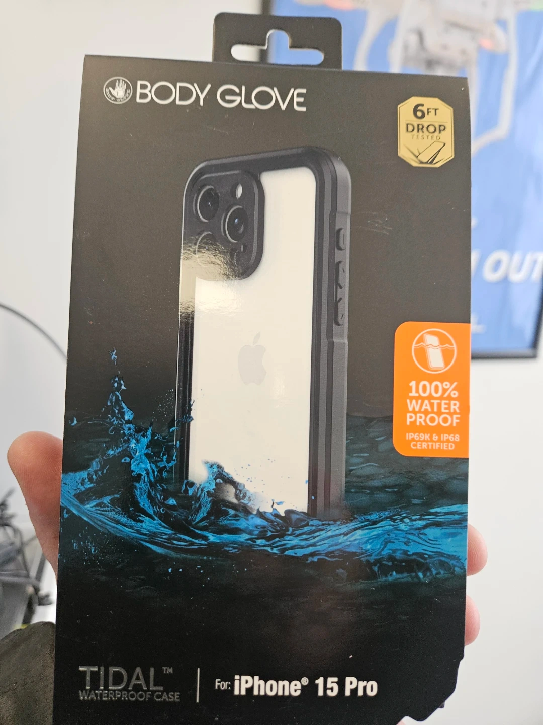 This Body Glove Tidal case offers 100% waterproof protection for your iPhone 15 Pro. It's IP69K & IP68 certified and drop tested up to 6ft. This case also keeps out dust, dirt, and snow.
