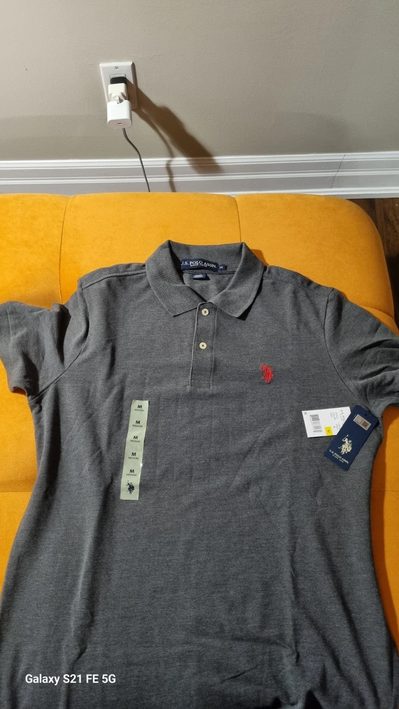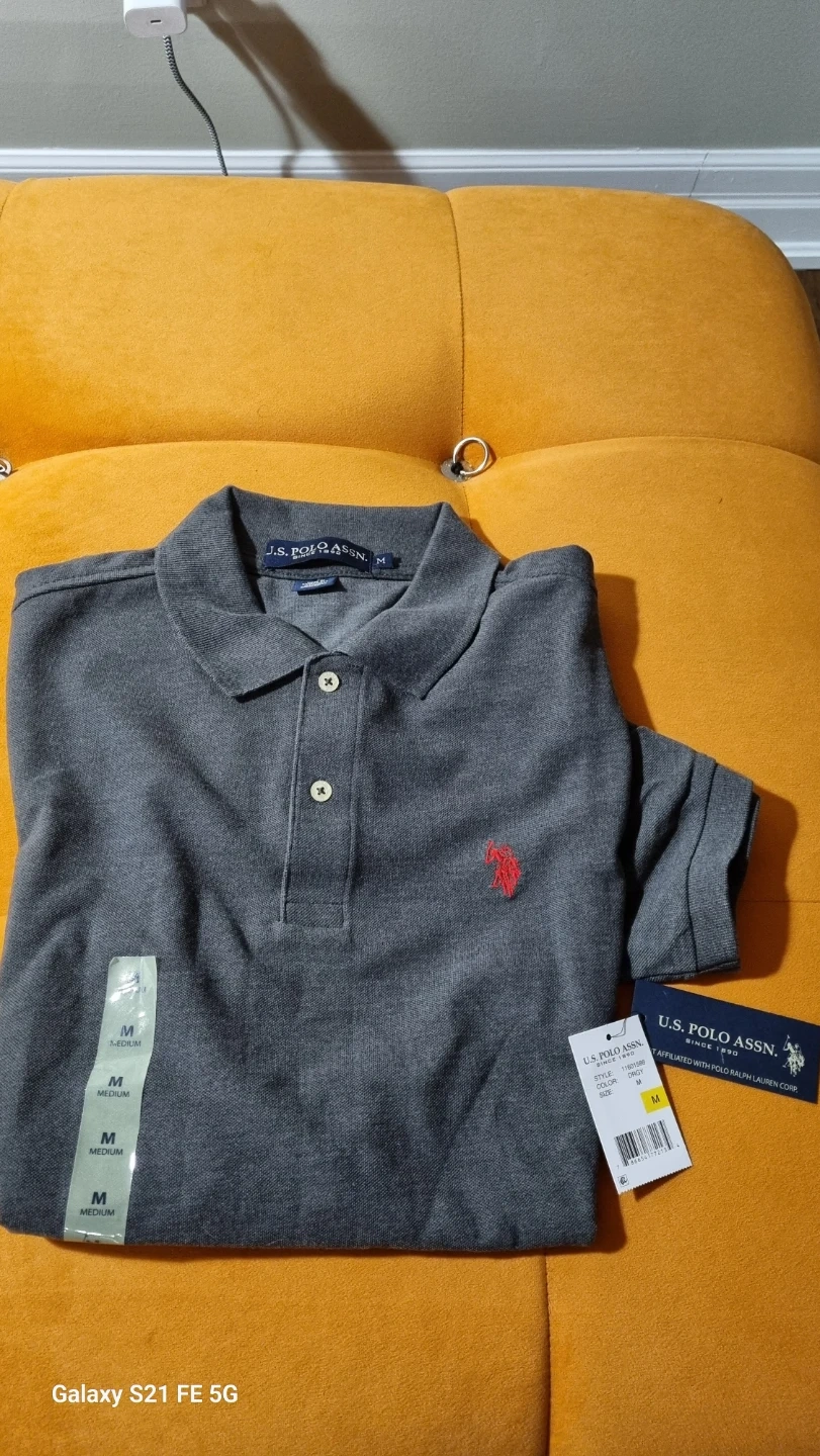 I'm selling a U.S. Polo Assn. polo shirt in size medium. It's a nice grey colour and appears to be in new condition with tags still attached! Perfect for a casual day out or dressing up a bit. Feel free to reach out if you're interested!
