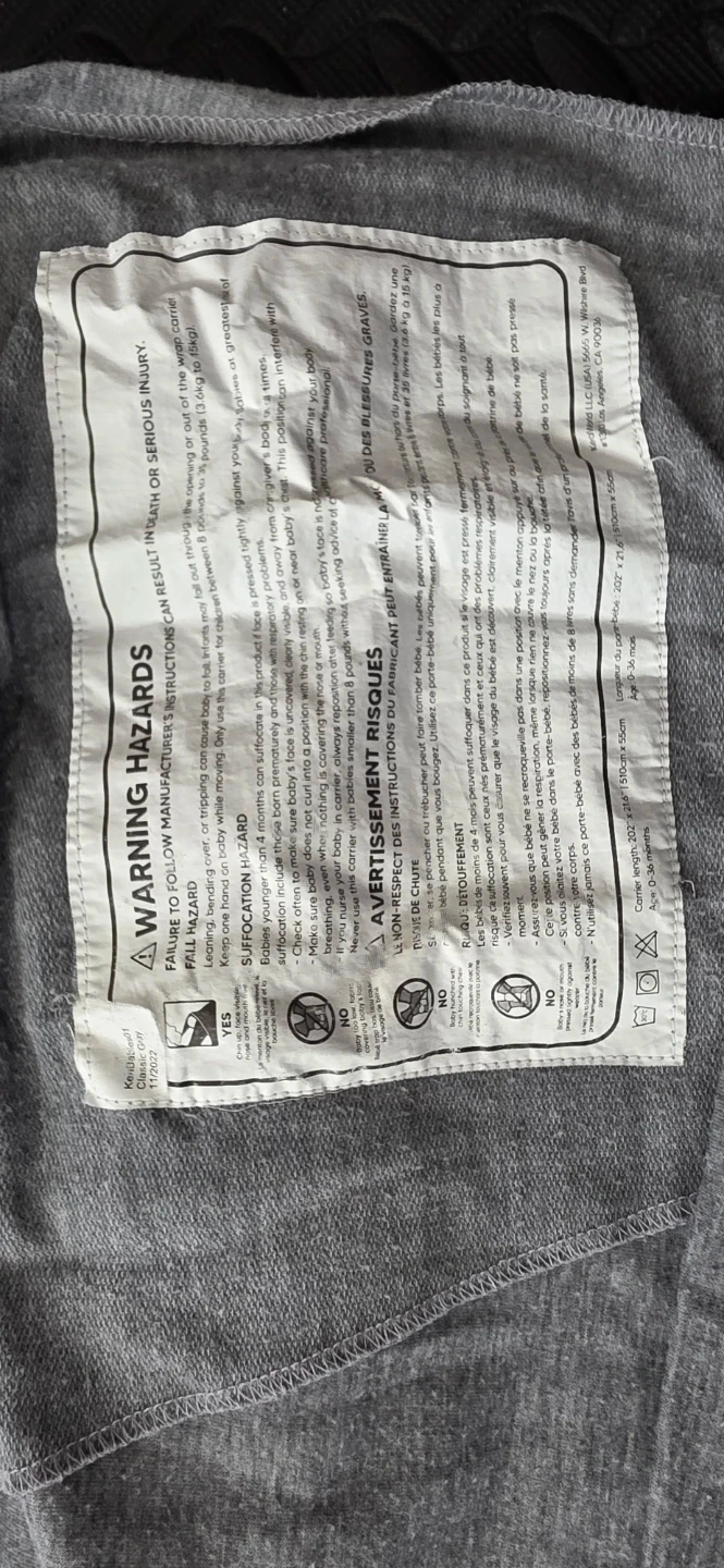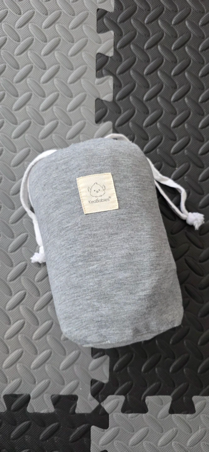 KeaBabies wrap carrier in grey. Made from a soft, stretchy cotton blend. This carrier is designed for newborns and infants up to 35 lbs. It's machine washable and easy to adjust.